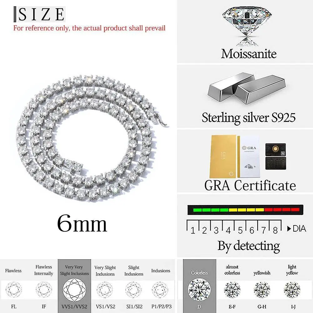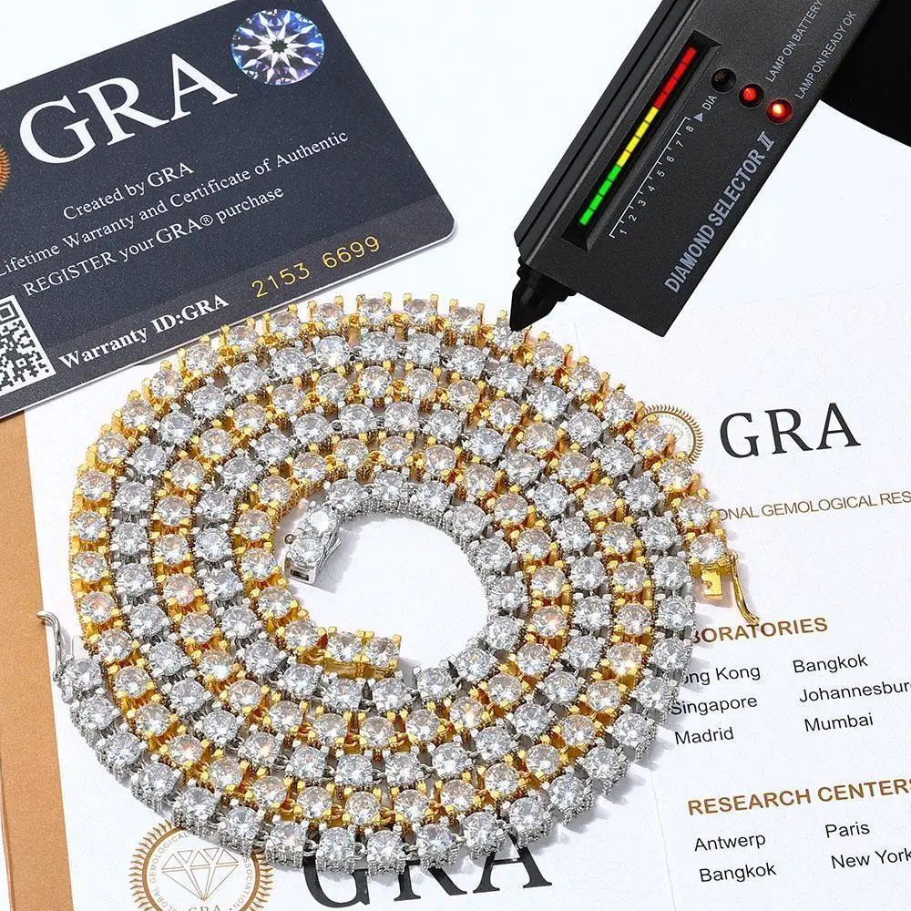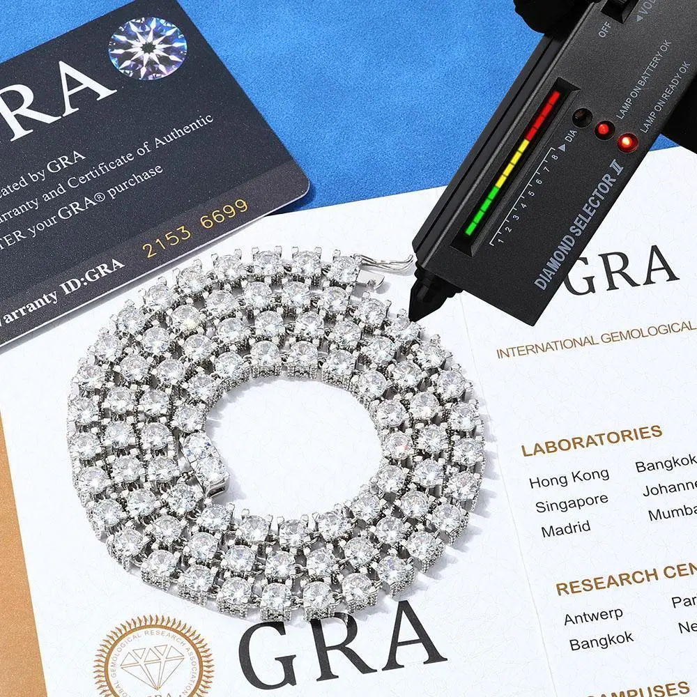 3/4/5MM VVS Moissanite Tennis Bracelet Custom Made Pass Diamond Tester 925 Sterling Silver Hip Hop Jewelry Tennis Chain Necklace