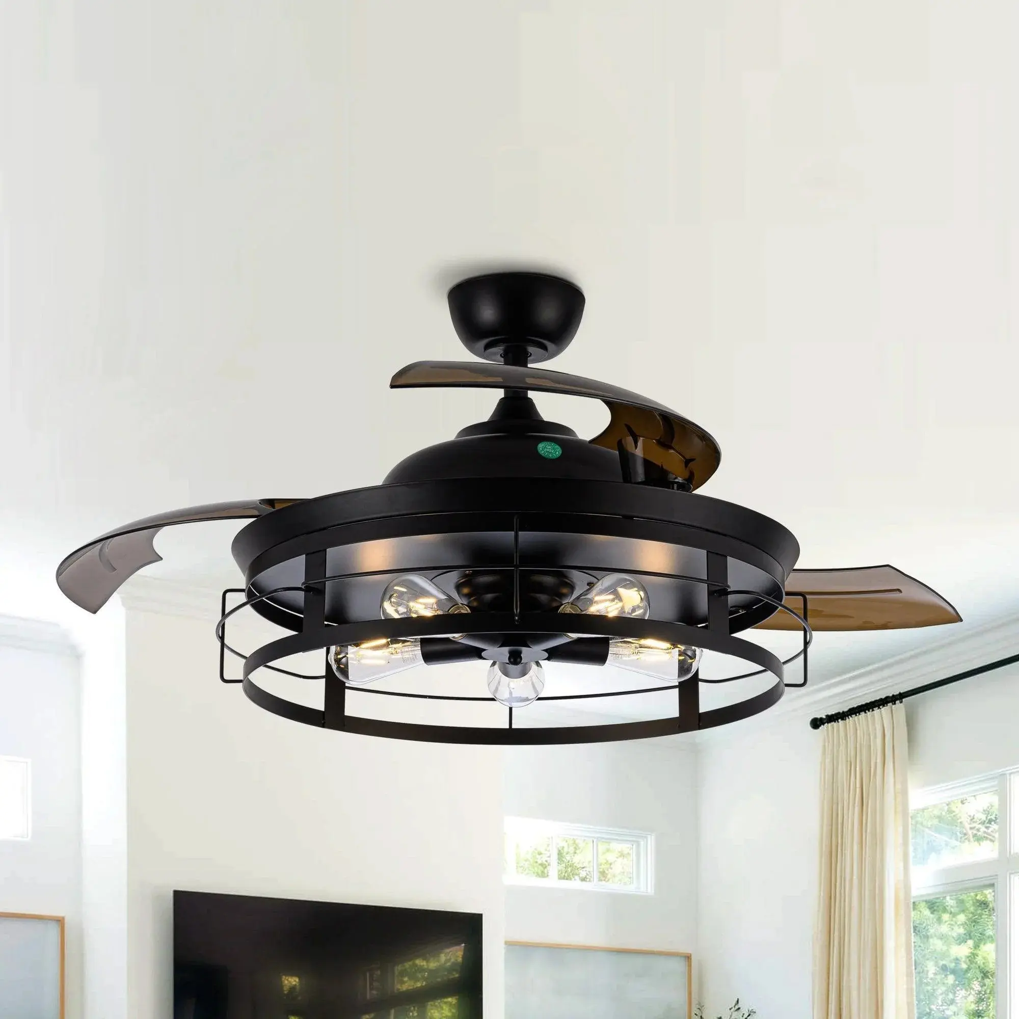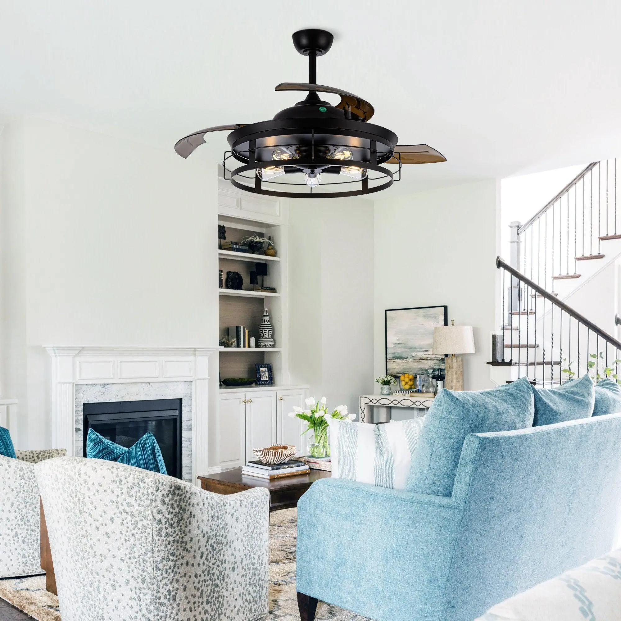 ·HIGH-QUALITY MATERIALS: Function meets fashion in this radiant and chic 52-inch retractable chandelier ceiling fan. Three dark brown PC blades allow for maximum air movement! The motor technology delivers powerful air movement with whisper-quiet performance.