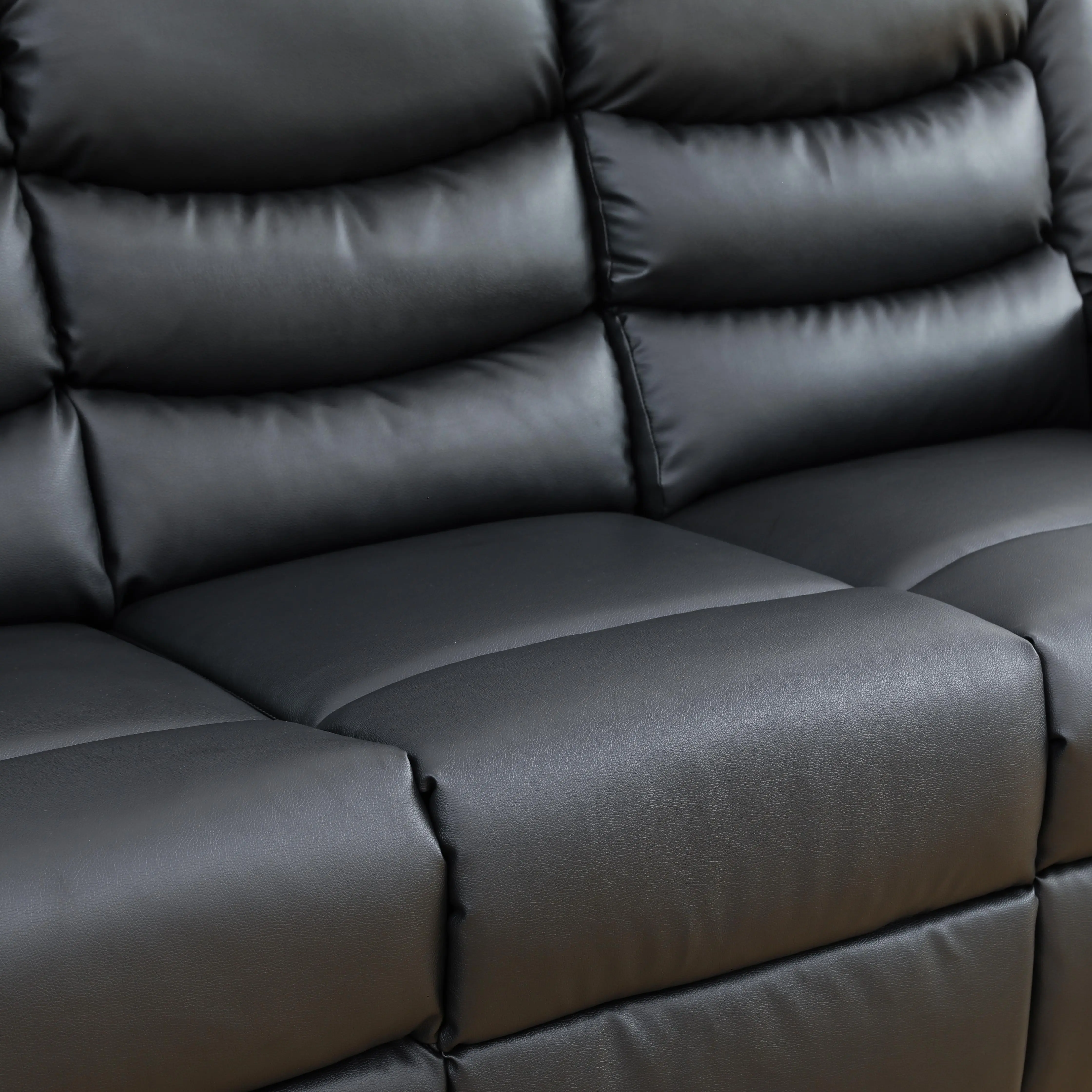 ✨ A Ainehome Classic Black Faux Synthetic Leather 3-Piece Couch Reclining Sofa Living Room Set ✨