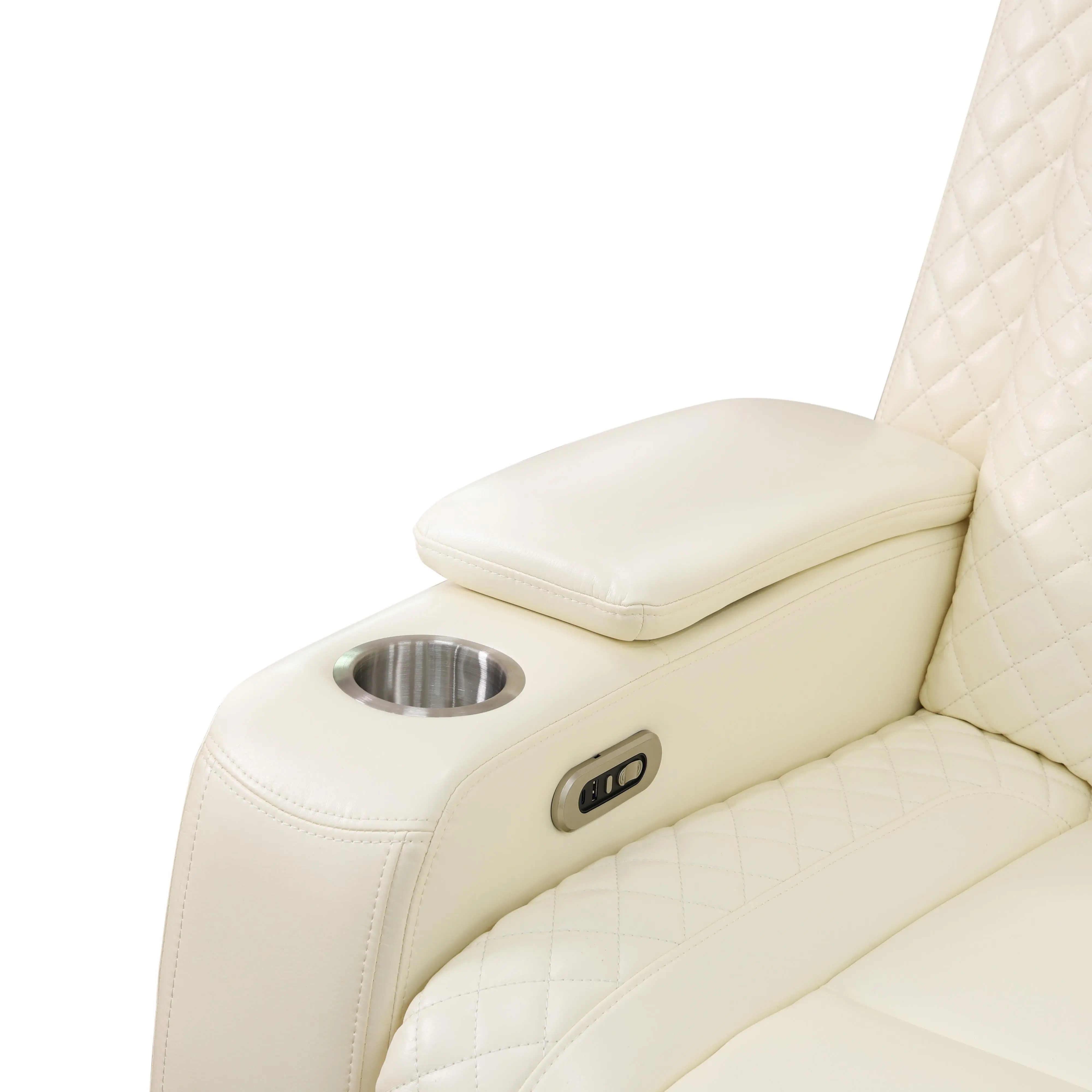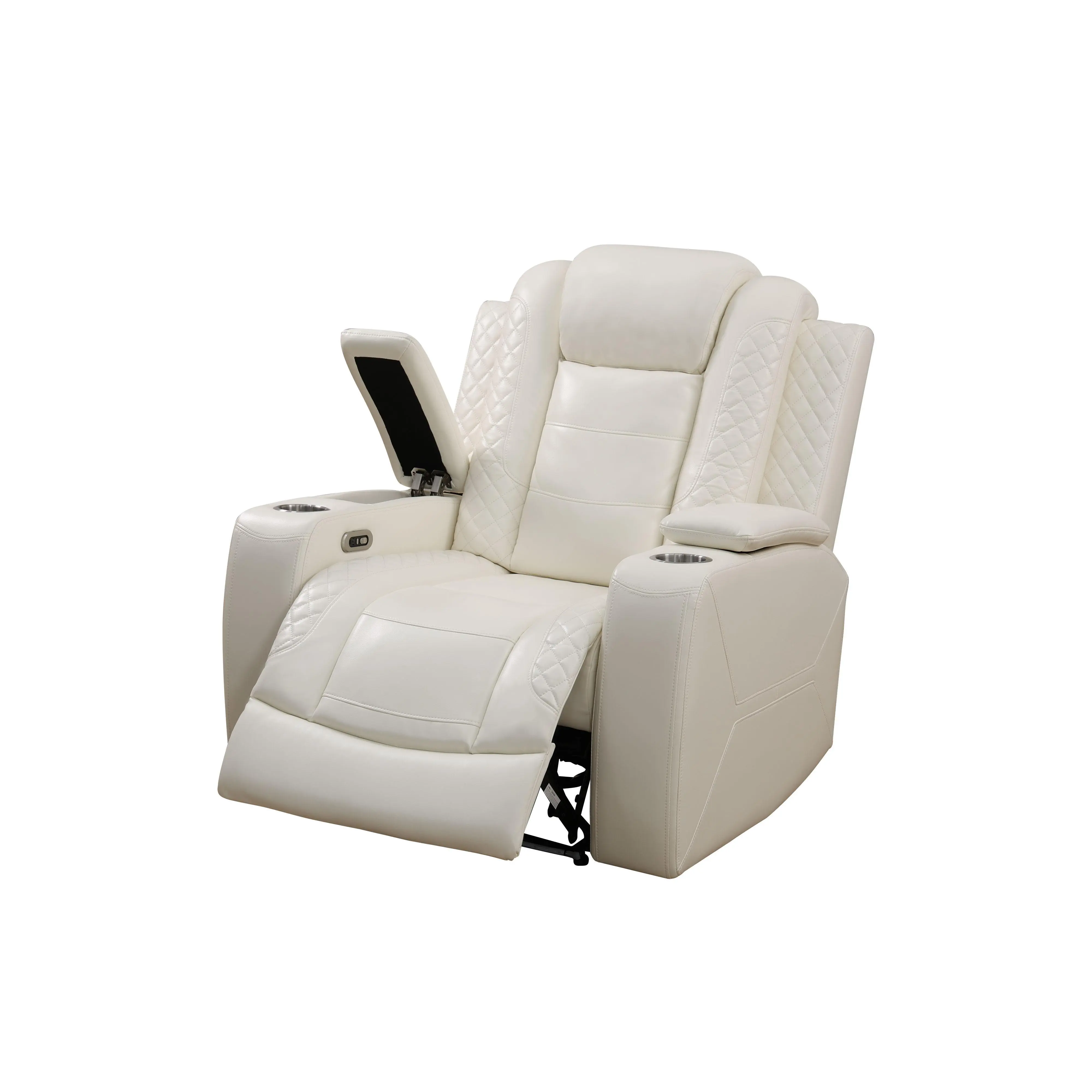 a. The product (White) with intelligent functions. The backrest tilts back can reach110-115° for comfortable sitting, and also can reach the angle appropriately forsleeping. Control the switchgear for adjustable angle in your needsb. The Chair and loveseat with storage bucket for daily using items storage and cup-