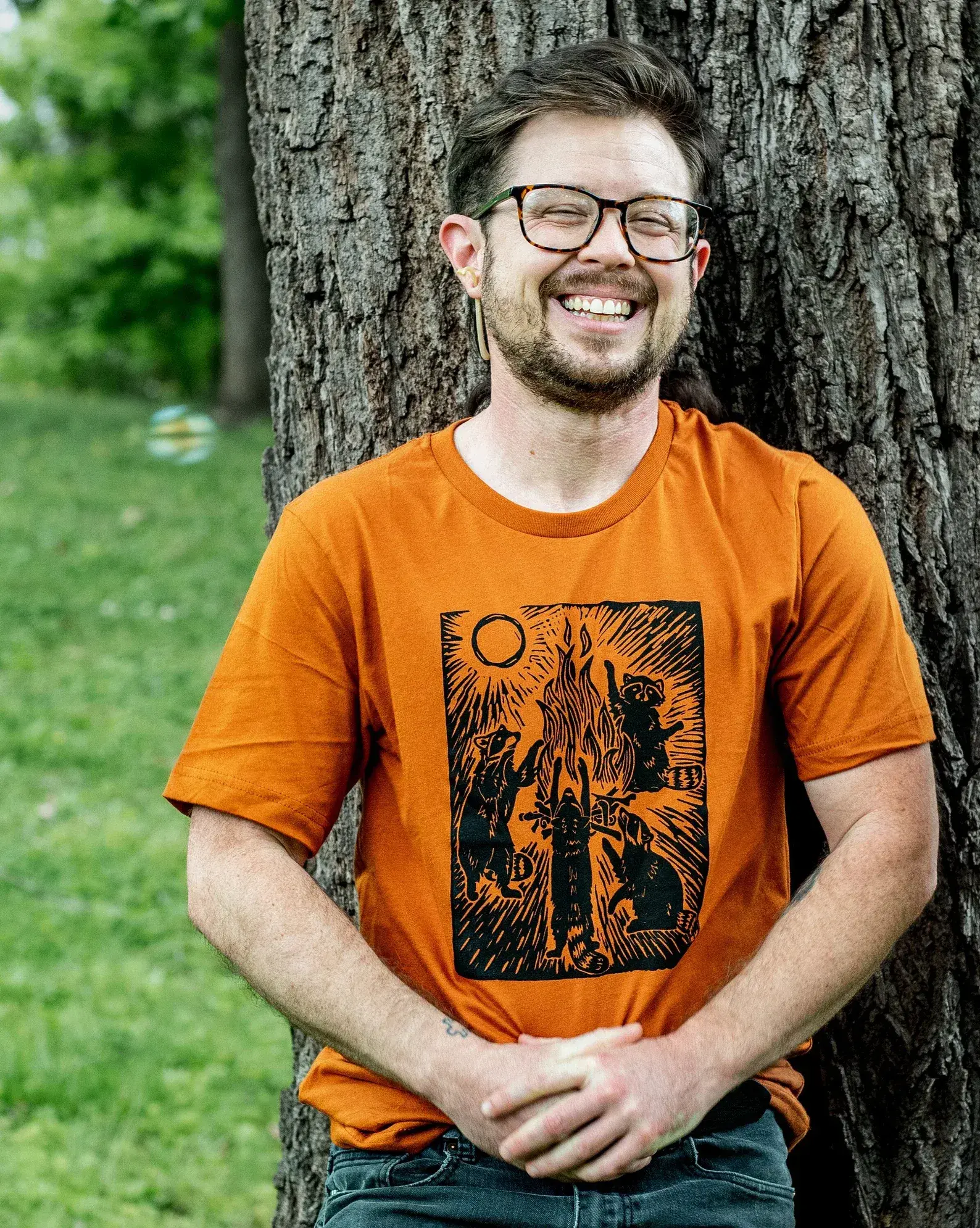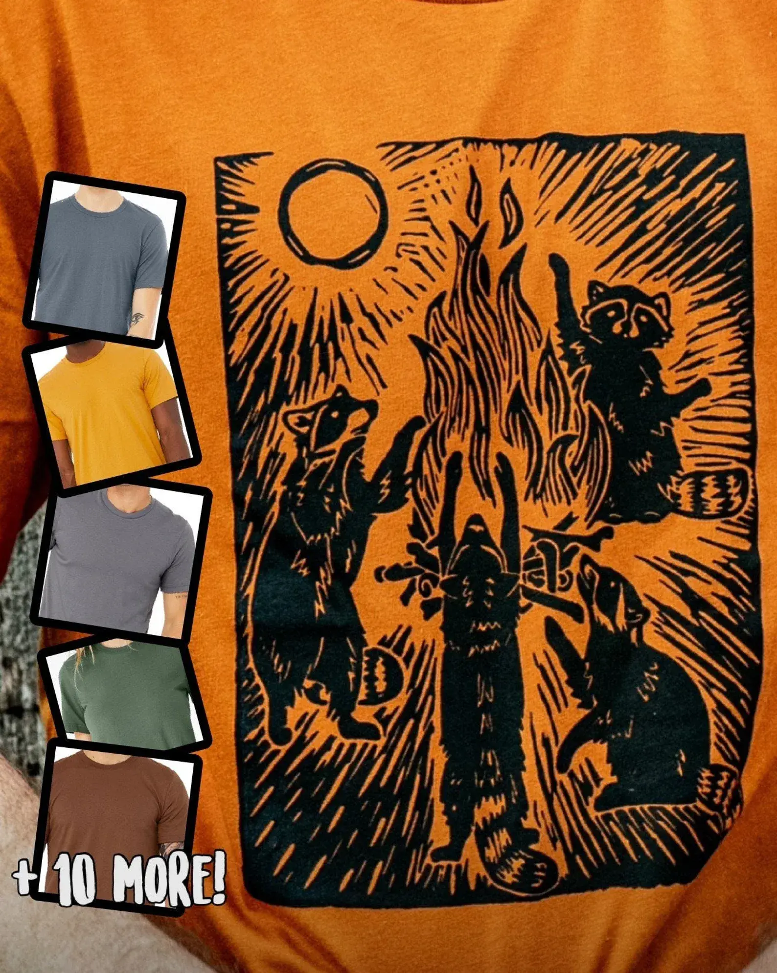 Raccoon Bonfire Graphic Tee - Screenprinted Design with Trash Creatures Theme, Perfect Meme Streetwear Essential for Trending Gift Seasons