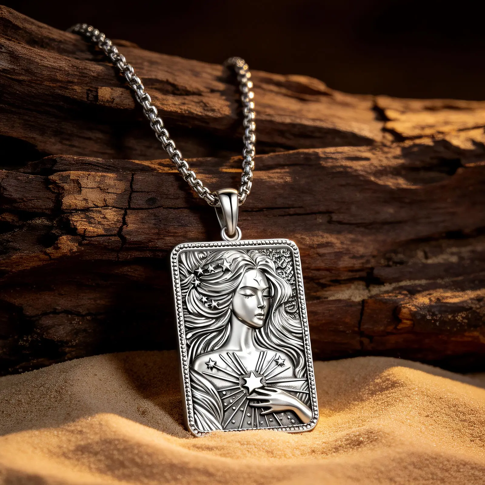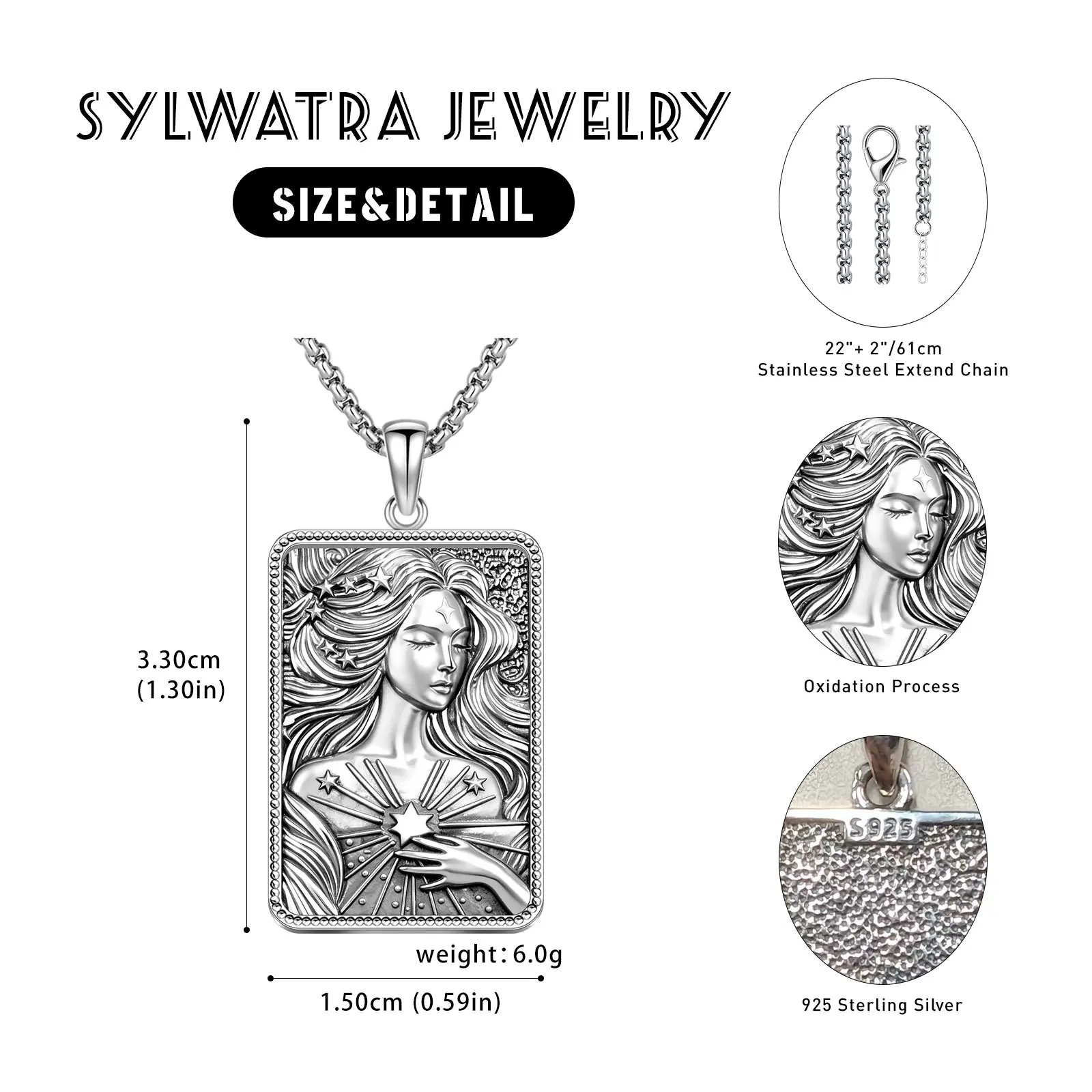 Goddess Nyx Symbolic Pendant Design. This necklace is inspired by Nyx, the Greek goddess of the night, embodying mystery, inner strength, intuition and divine protection. As a meaningful amulet, it carries deep spiritual symbolism and faith, making it a unique piece for anyone drawn to mythology and goddess-inspired jewelry, suitable for both women and men.
