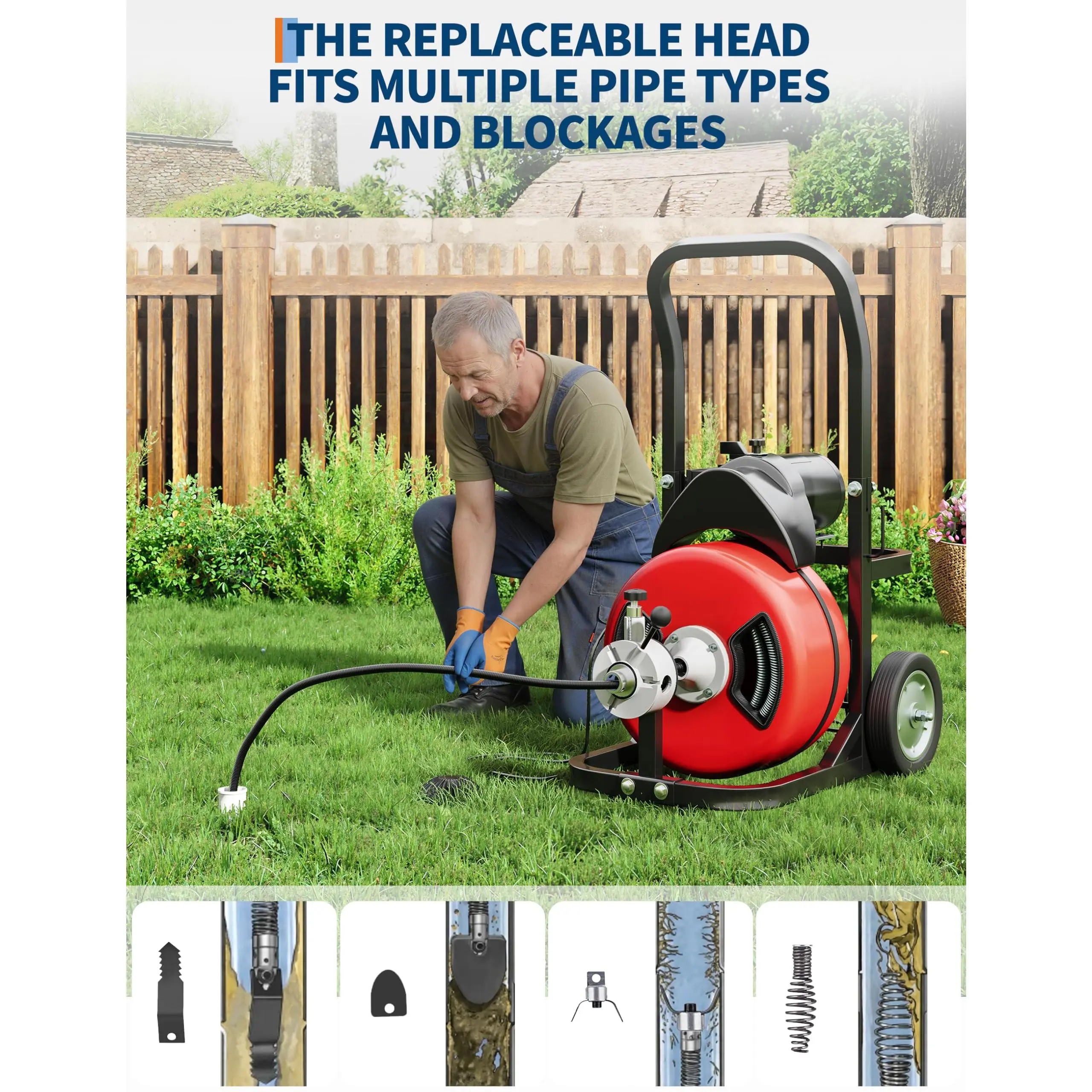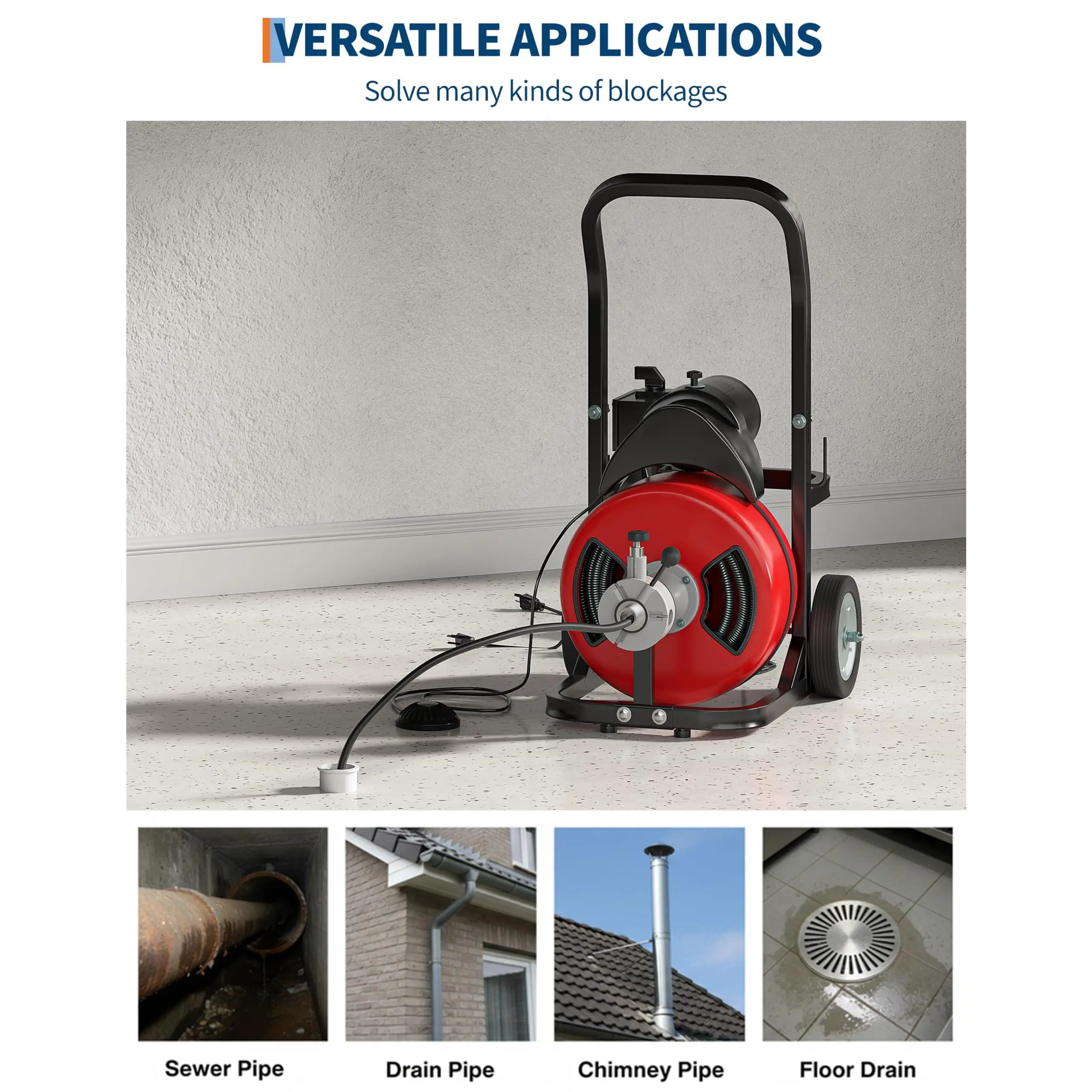 Powerful Electric Motor: Tackle the toughest clogs in 1"-4" pipes with a high-torque electric motor designed for both home drain lines and professional sewer jobs.