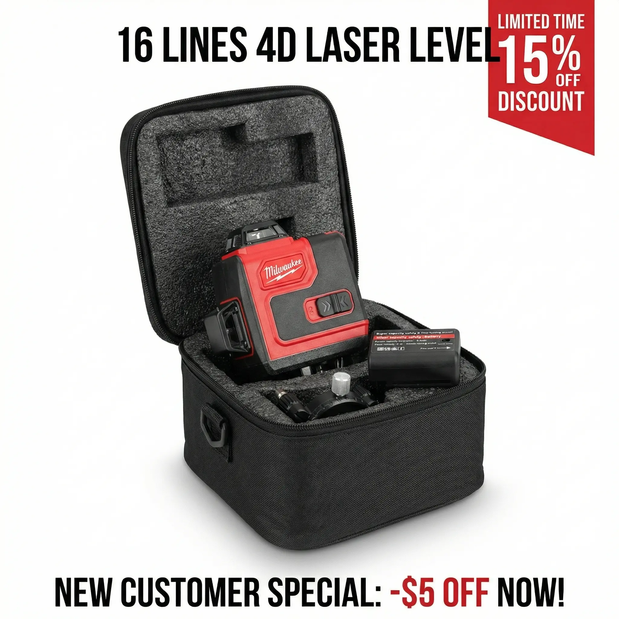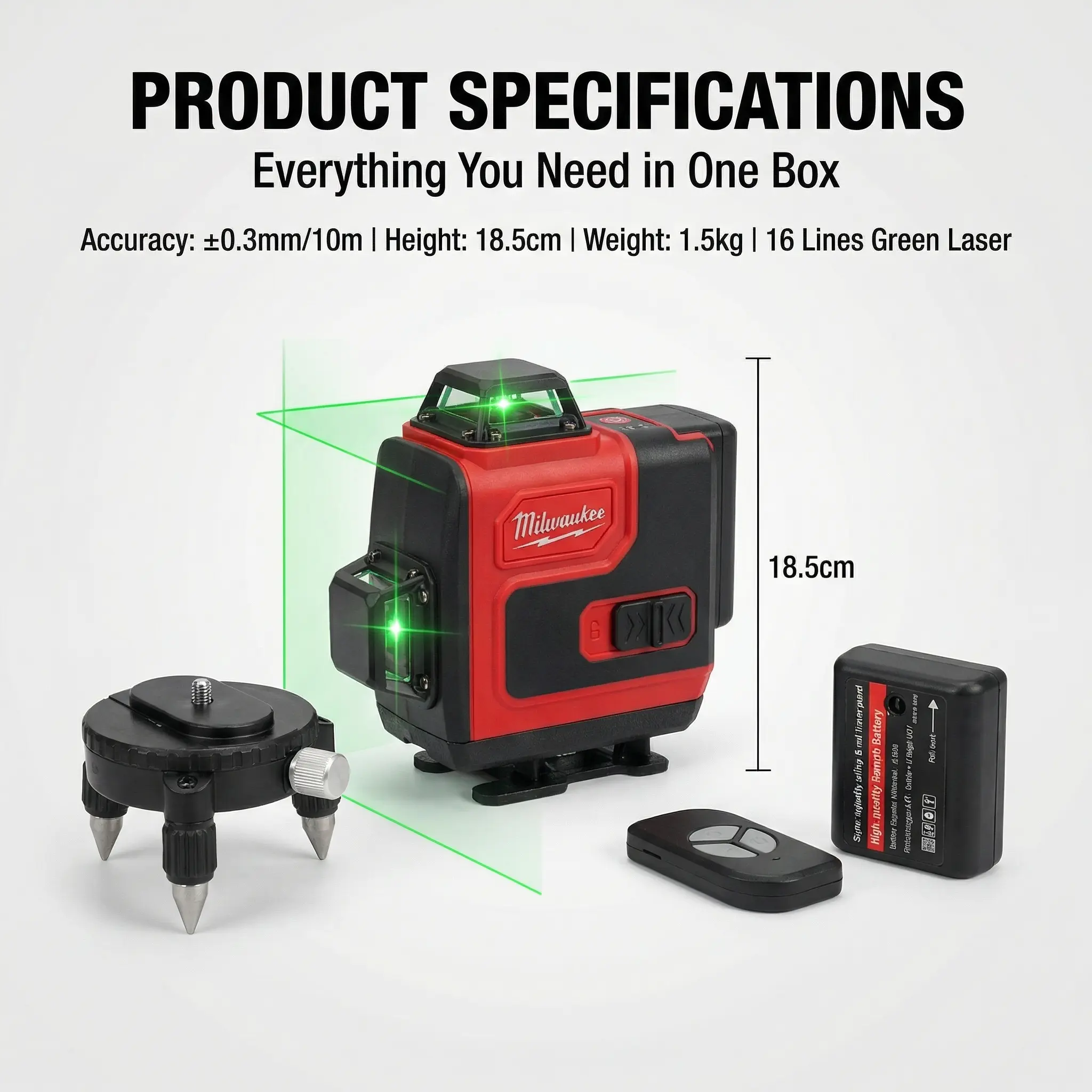 Milwaukee 16 Line Laser Level Kit for Construction Layout Vertical and Horizontal Cross Line Tool High Precision