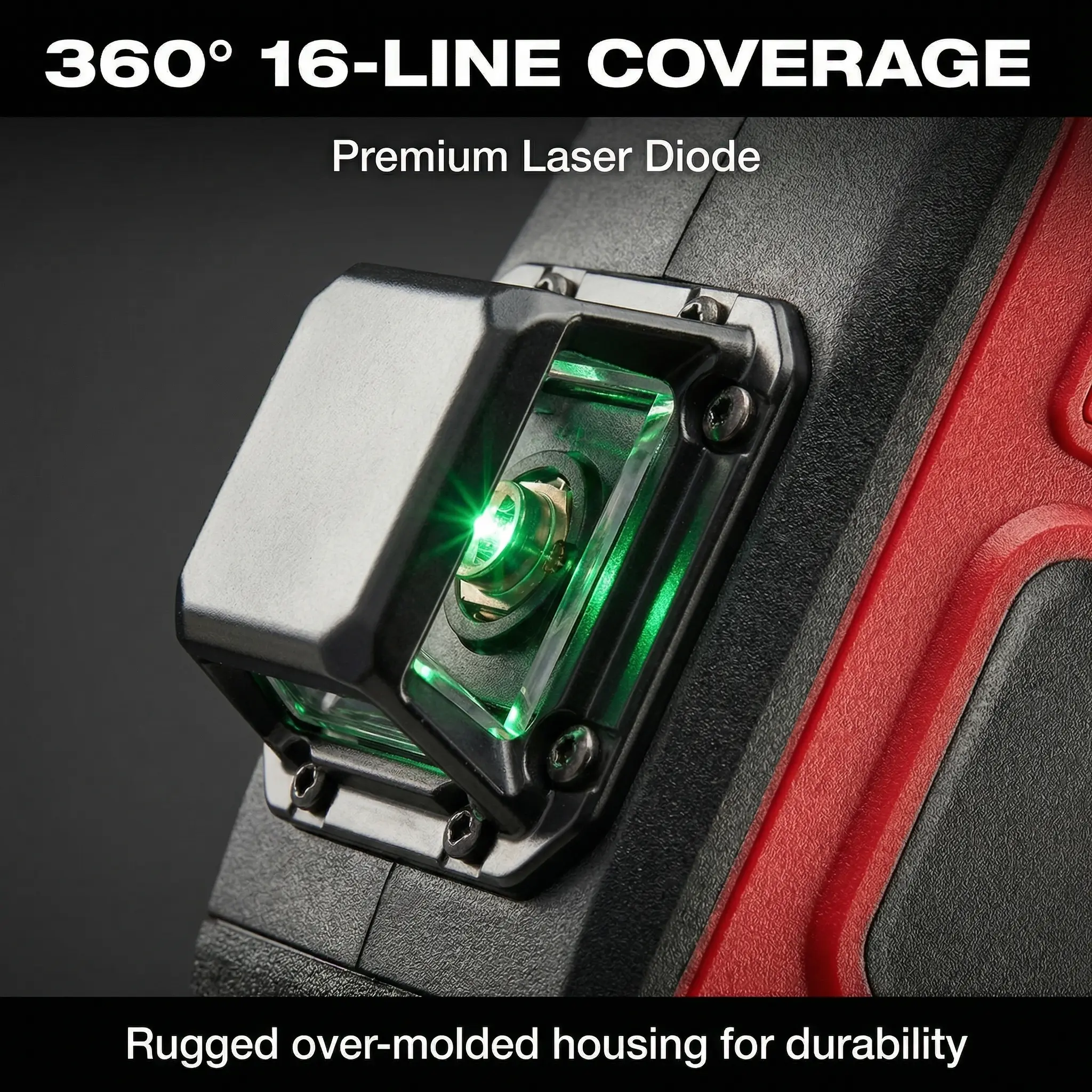 16 line laser with ±0.3mm accuracy delivers precise horizontal and vertical alignment for complex layouts