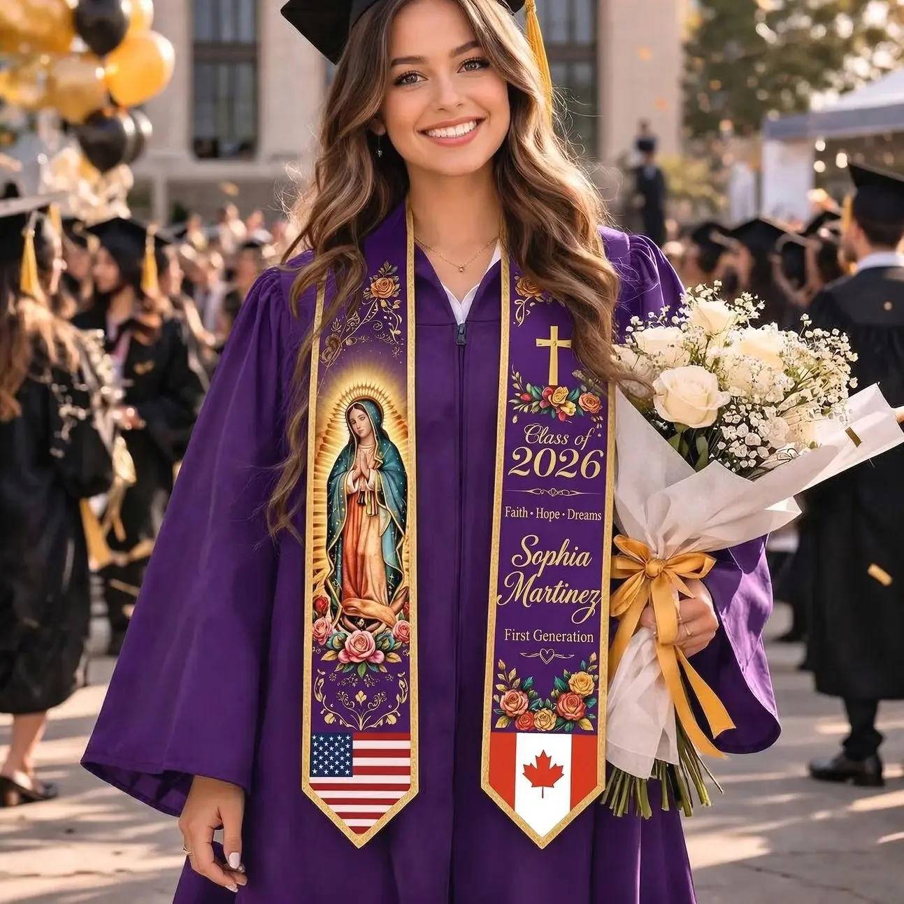 5. Personalized Catholic Graduation Stole, Virgen de Guadalupe Grad Sash, Custom Name Class of 2026, First Generation Graduate Gift