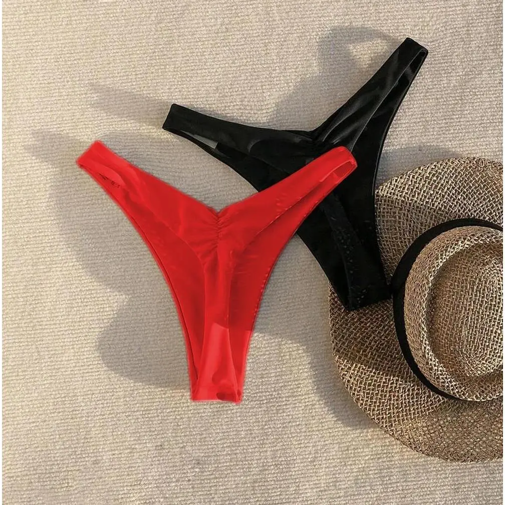 High-cut bikini bottoms with thong, cheeky but not exposed, making you look sexy.