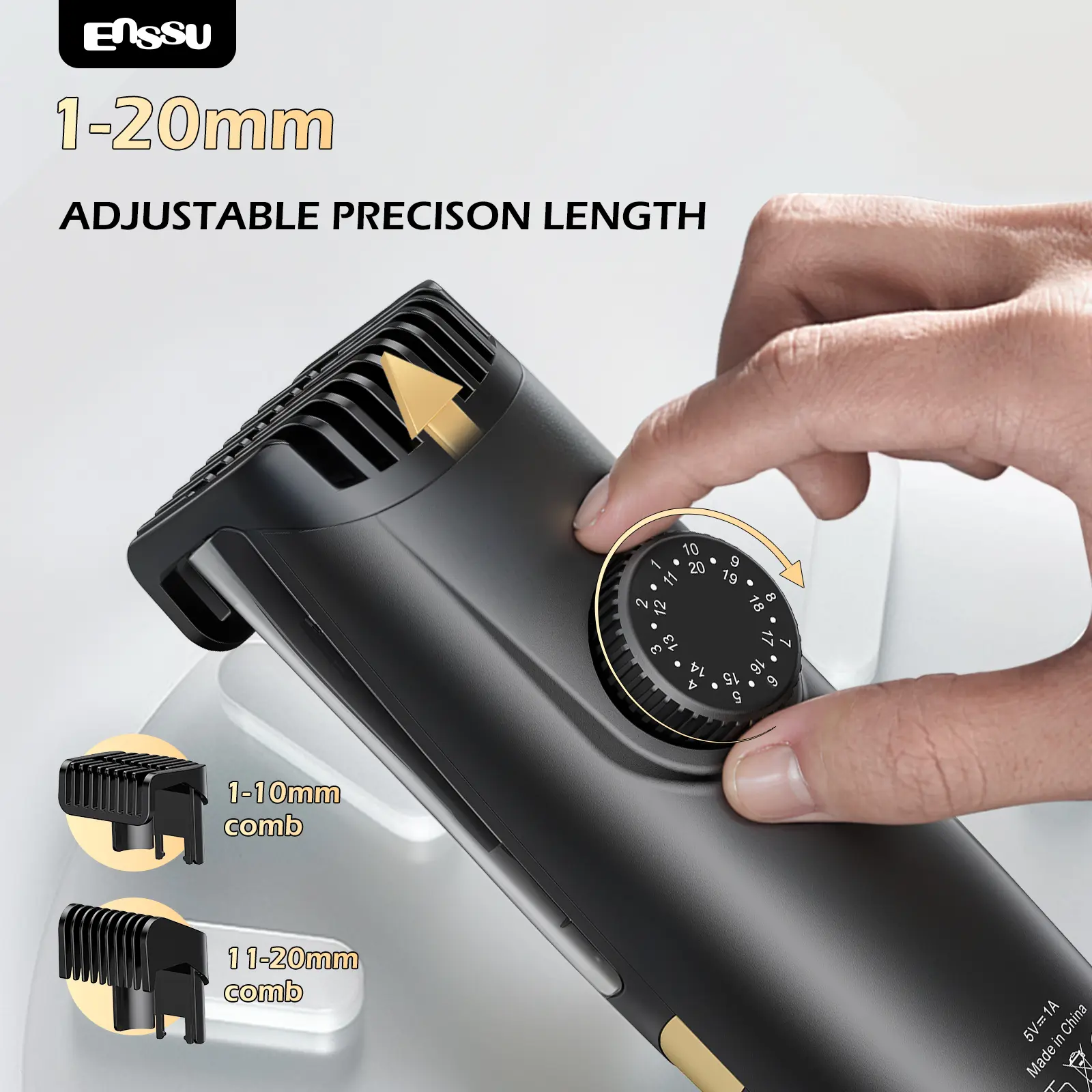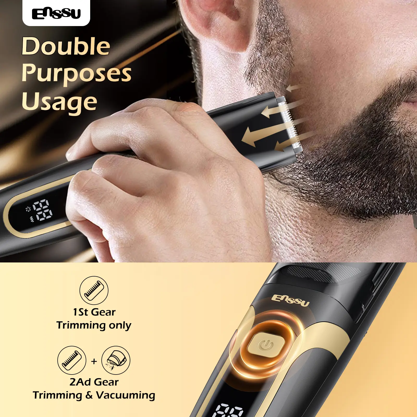 Enssu Vacuum Beard Trimmer for Men, Auto Hair Suction Electric Trimmer, 2 Guide Combs, Adjustable Length Dial, Waterproof Cordless Grooming Kit for Beard, Face & Body