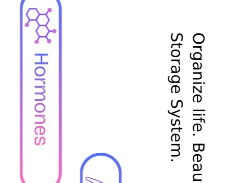 Standardized set of labeled reusable ziplock bags for medication organization with labels.