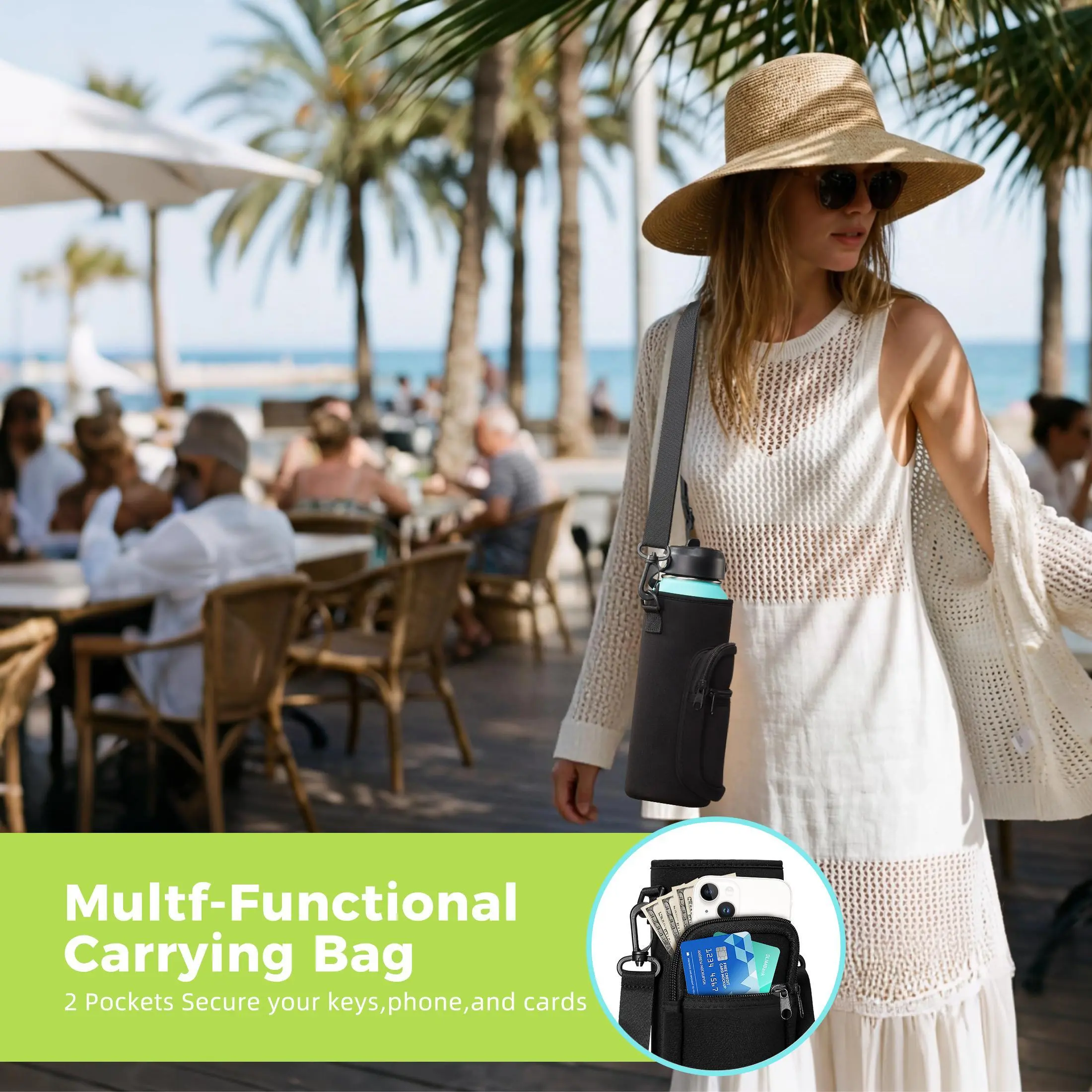 32oz Insulated Stainless Steel Water Bottle, Gallon Flask Water Bottle - Big Water Jug with Straw & Spout Lid, Paracord Handle, Carrier Bag, 32/40/64/128oz