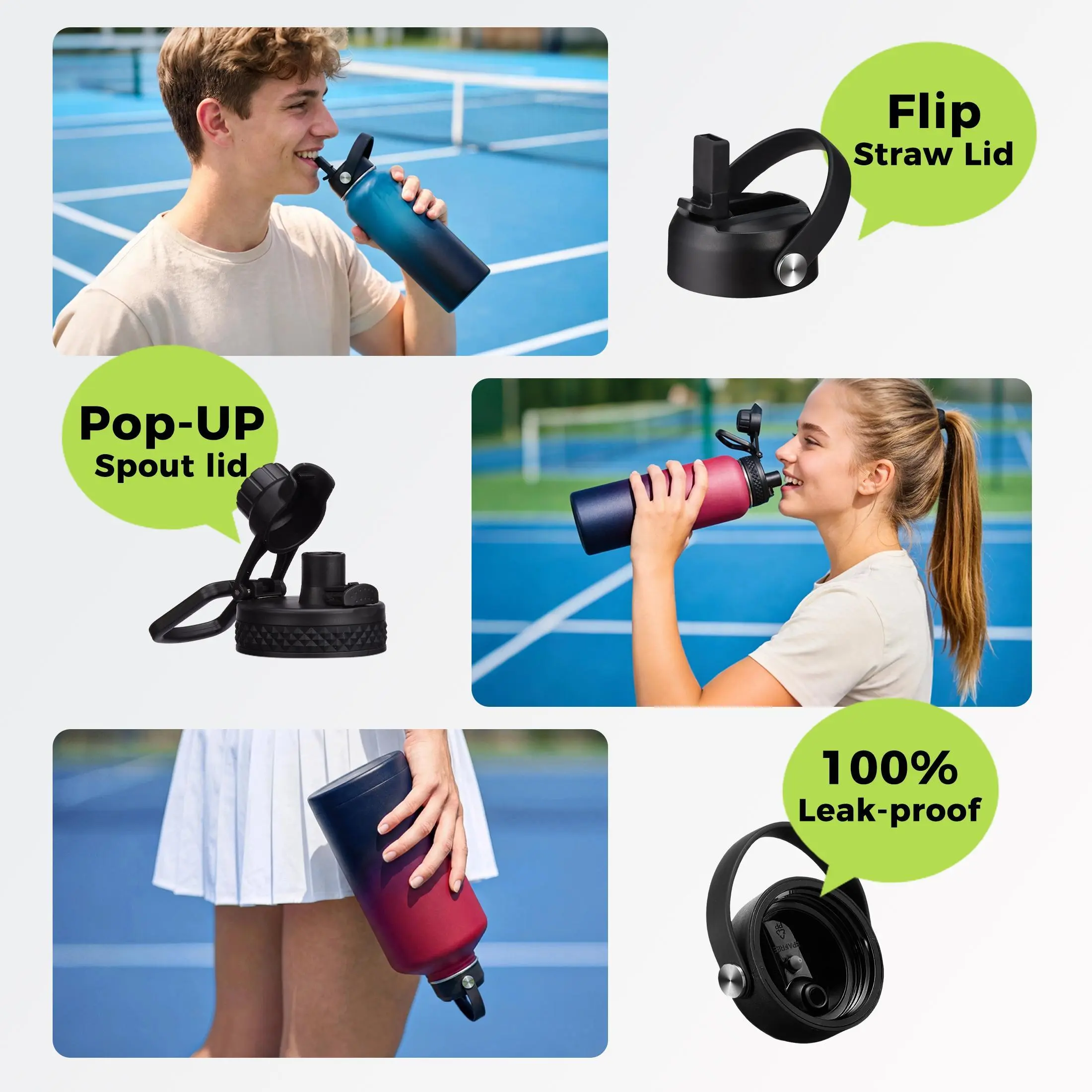 HydroJug Traveler | Leak-Proof Insulated Tumbler with Flip Straw & Cup Holder Fit Flasks Lid Drinkware
