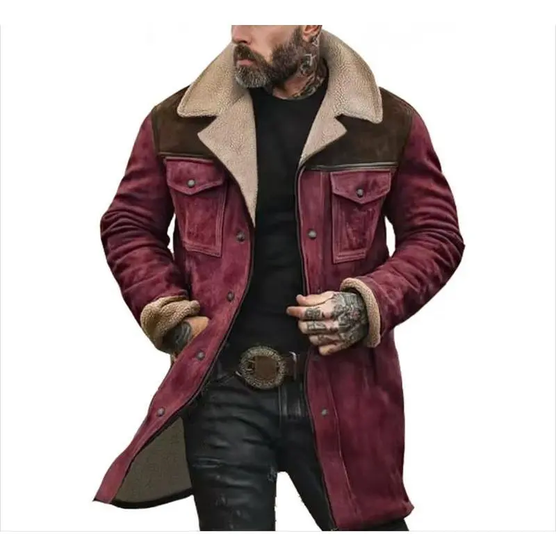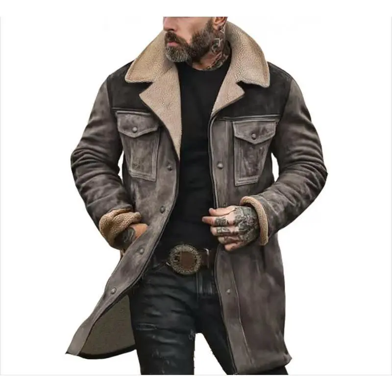 Mens Western Cowboy Jacket Vintage Suede Jacket Long Trench Coats Cowboy Peacoat Retro Tops Casual Menswear Shirt Soft Fleece Hoodie jacket western clothing jackets letterman jacket western clothing windbreakers Leather Winter Streetwear Beige Crewneck