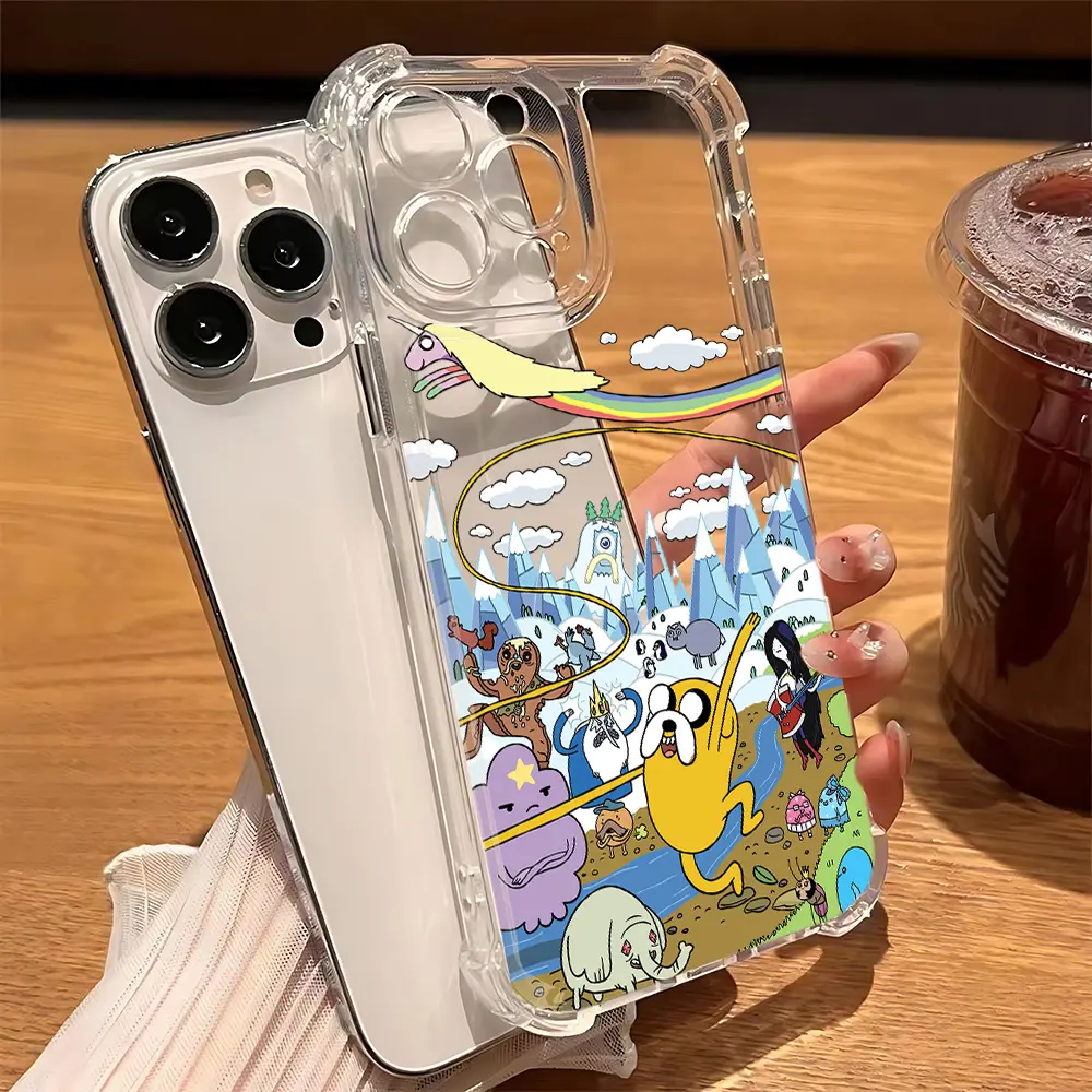 ·Vivid Cute Adventure Cartoon Full Cast Art with Premium Clear Anti-Yellowing Design:This phone case features a high-definition print of a classic cute adventure cartoon full cast, with vibrant, lively character designs and a fun, playful hand-drawn cartoon style. The high-transparency anti-yellowing clear back panel perfectly showcases the vivid pattern without discoloration over time, while advanced UV printing ensures the pattern is firmly attached, fade-resistant, and long-lasting for daily use, adding a unique kawaii personalized touch to your device.