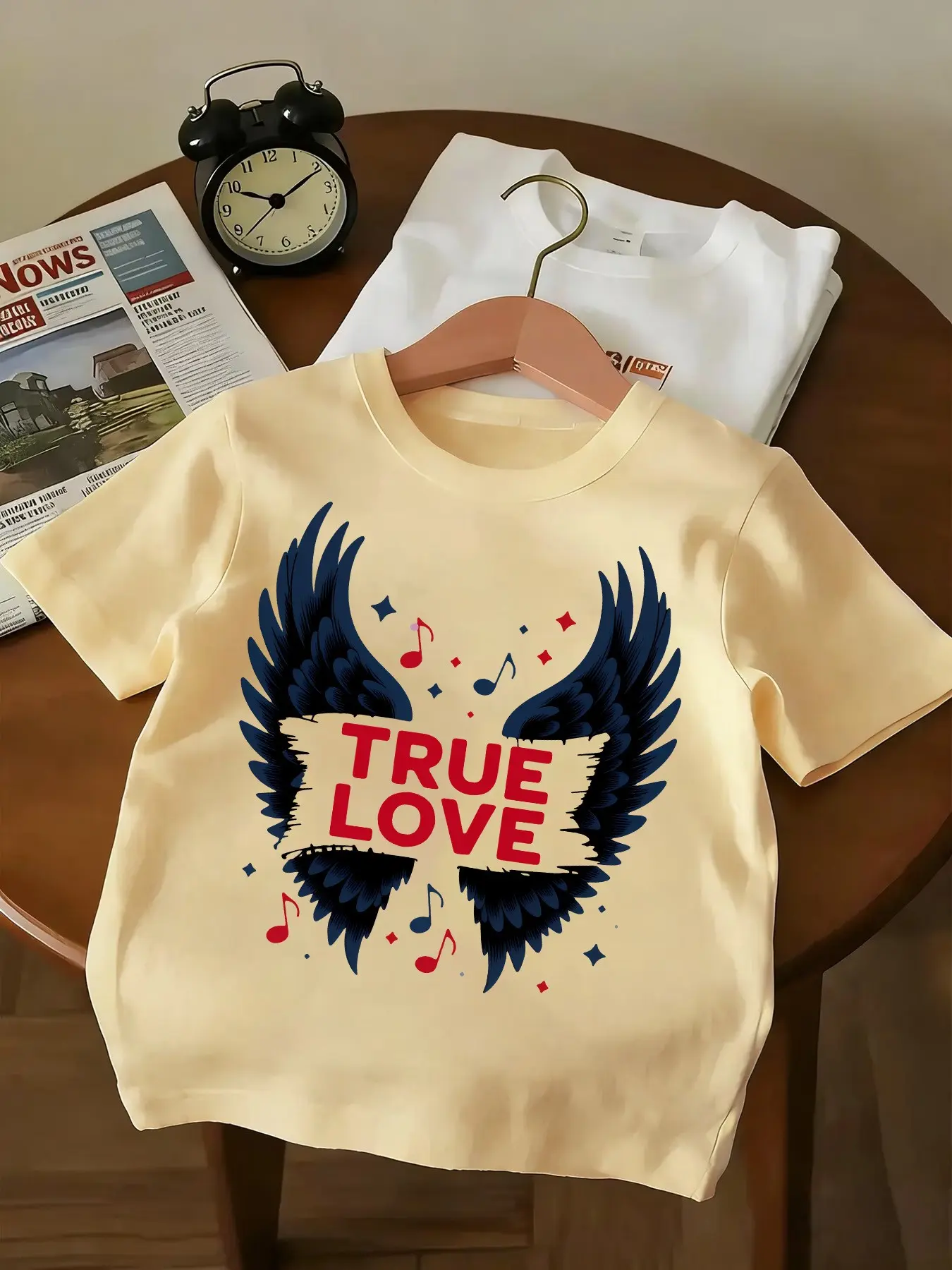 Teen Rock Style True Love Short Sleeve Tee, Deep Blue Wings True Love Print, Unisex Casual Slim Fit Round Neck T-Shirt