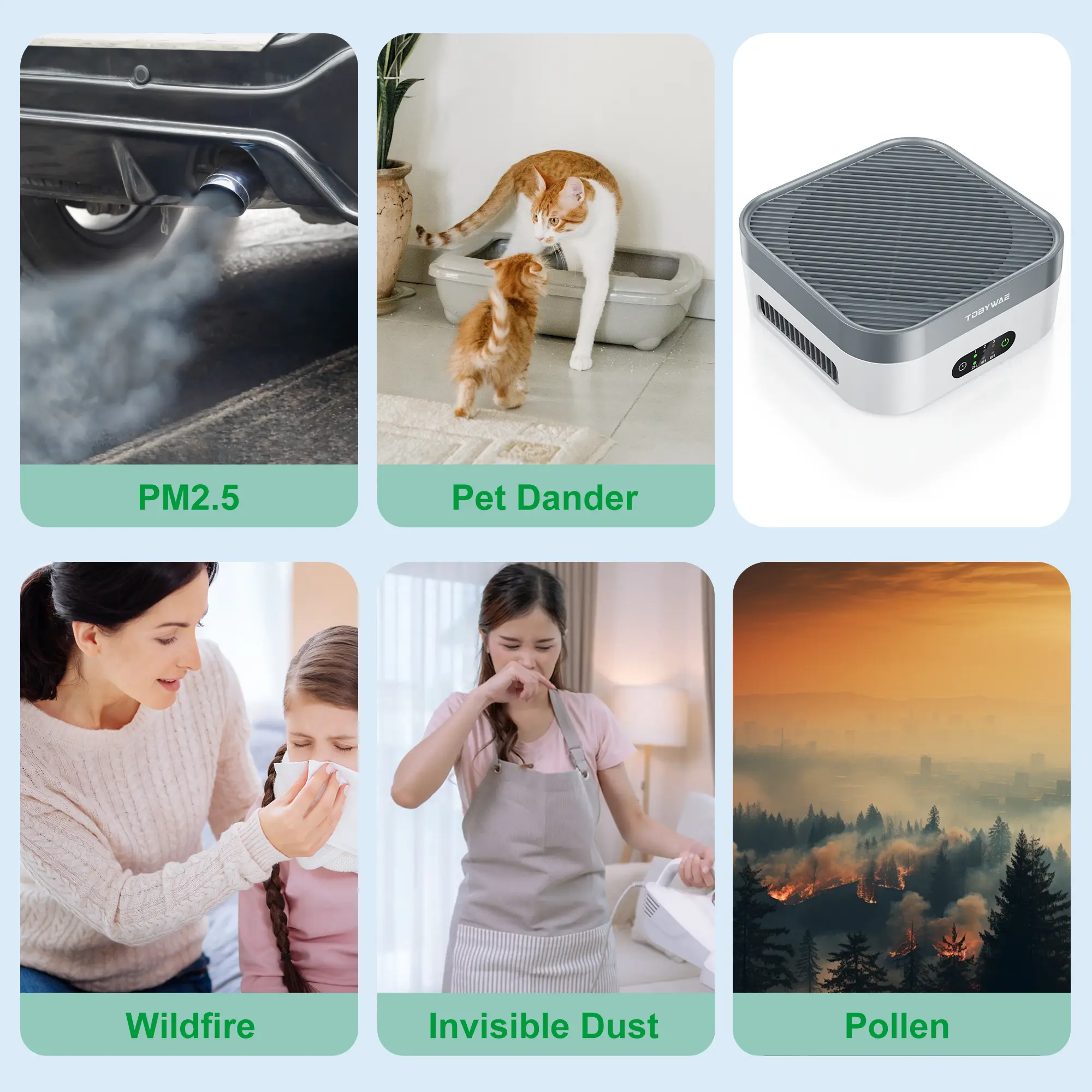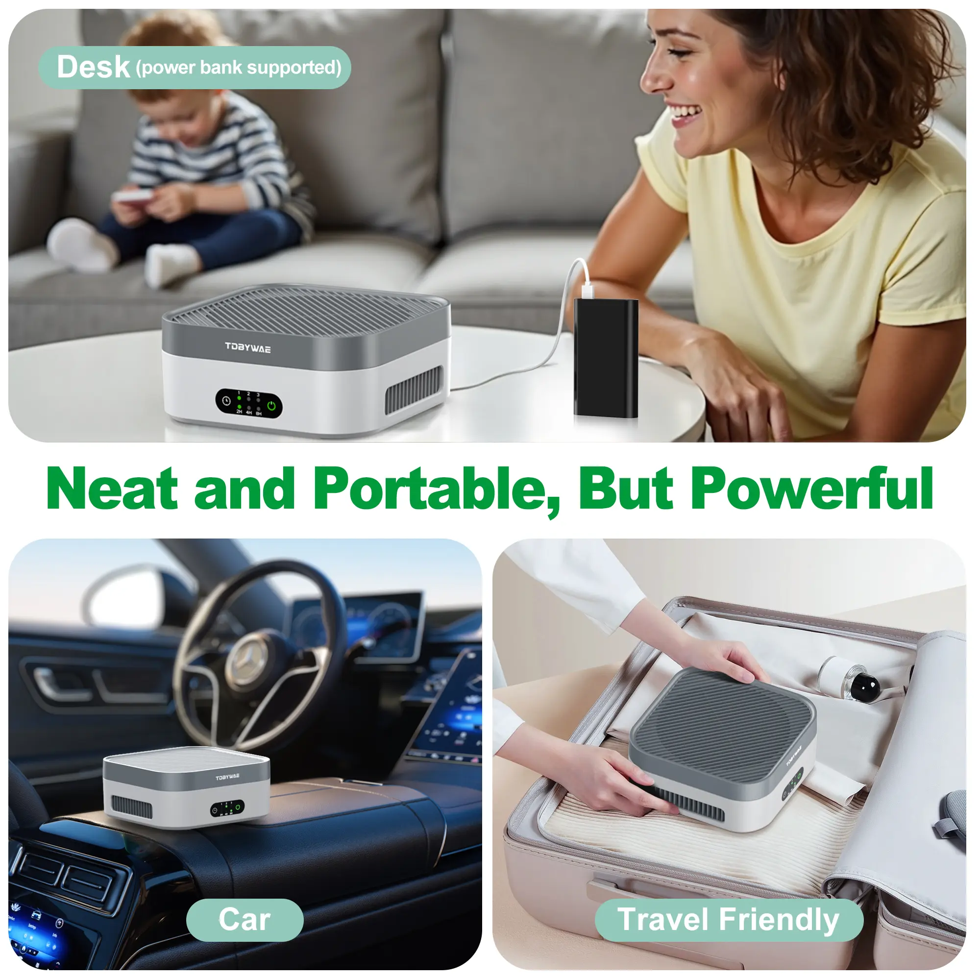 Ideal for Small Spaces: This mini air purifier is perfect for small rooms or cars. It efficiently filters out dust, pollen, and odors, ensuring a fresher environment. Ideal for allergy sufferers, it provides relief from airborne irritants.