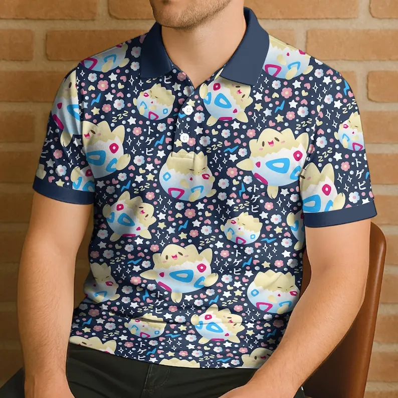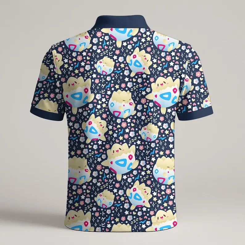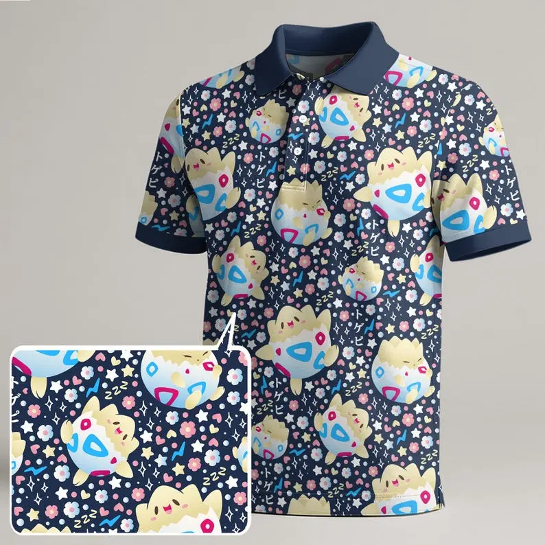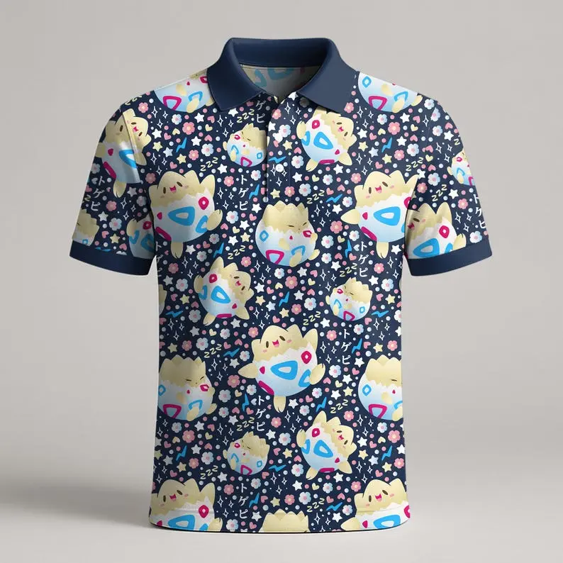 Togepi Polo Shirt, Cute Kawaii Pattern Polo, Pastel Summer Shirt, Adorable Gift Idea, Togepi Shirt Gift