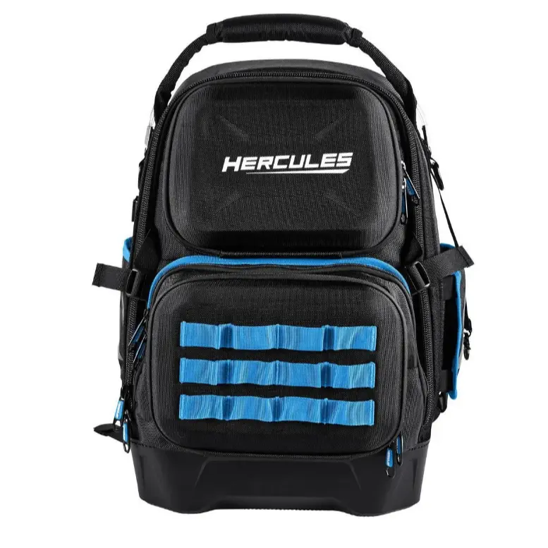 The HERCULES 42-pocket Extreme-Duty Jobsite Backpack is constructed from supertough, puncture and abrasion resistant fabric for maximum strength and durability. 42 pockets keep pliers, snips, wrenches, screwdrivers, and other hand tools easily accessible. This backpack features a hard molded bottom that protects tools from water and impact. The padded shoulder straps let you take a load off during transport and the carrying handle is reinforced with an extreme-duty braided cable that won't stretch or tear.