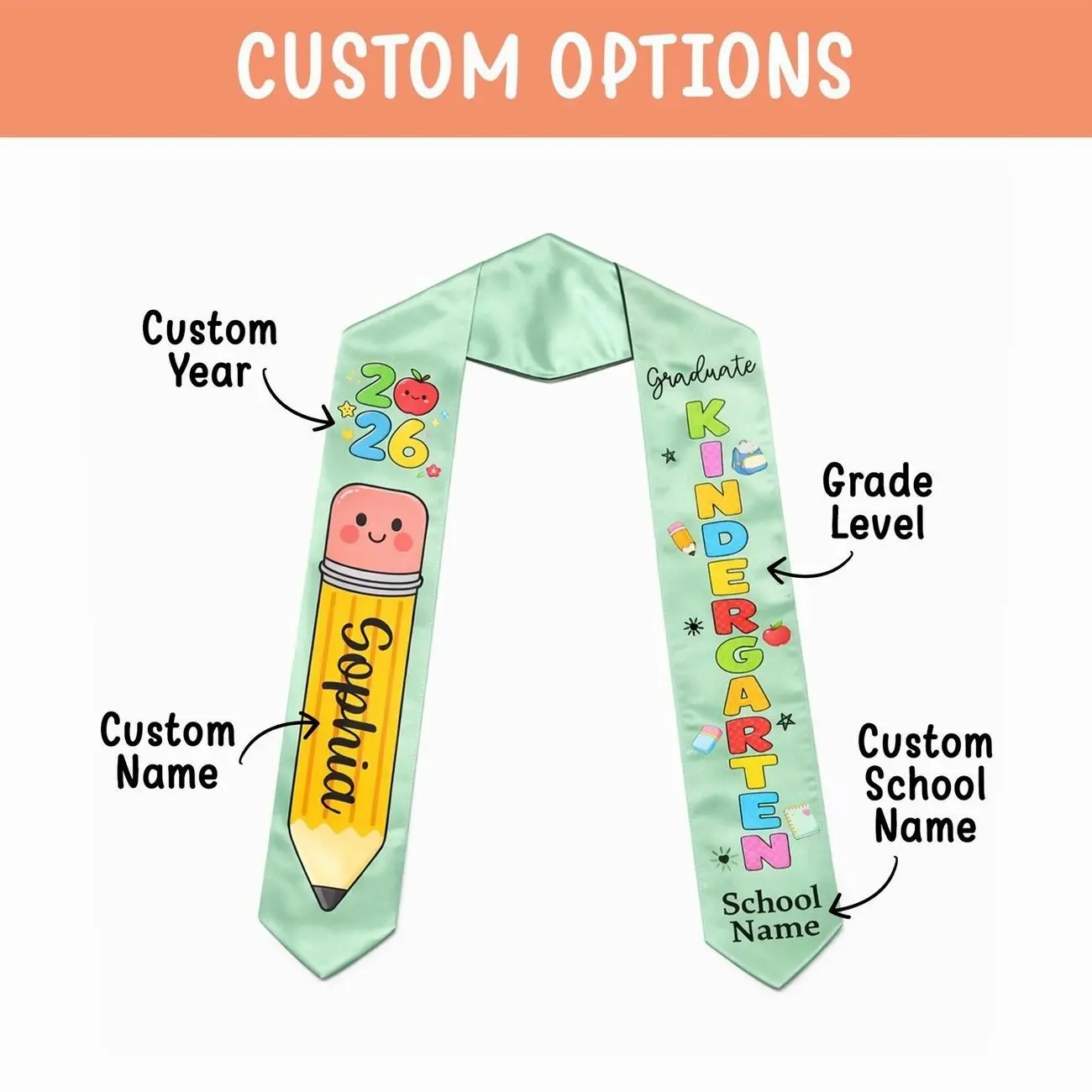 Personalized Preschool Graduation Stole 2026 – Custom Name Kindergarten Graduation Sash – Kids Graduation Outfit