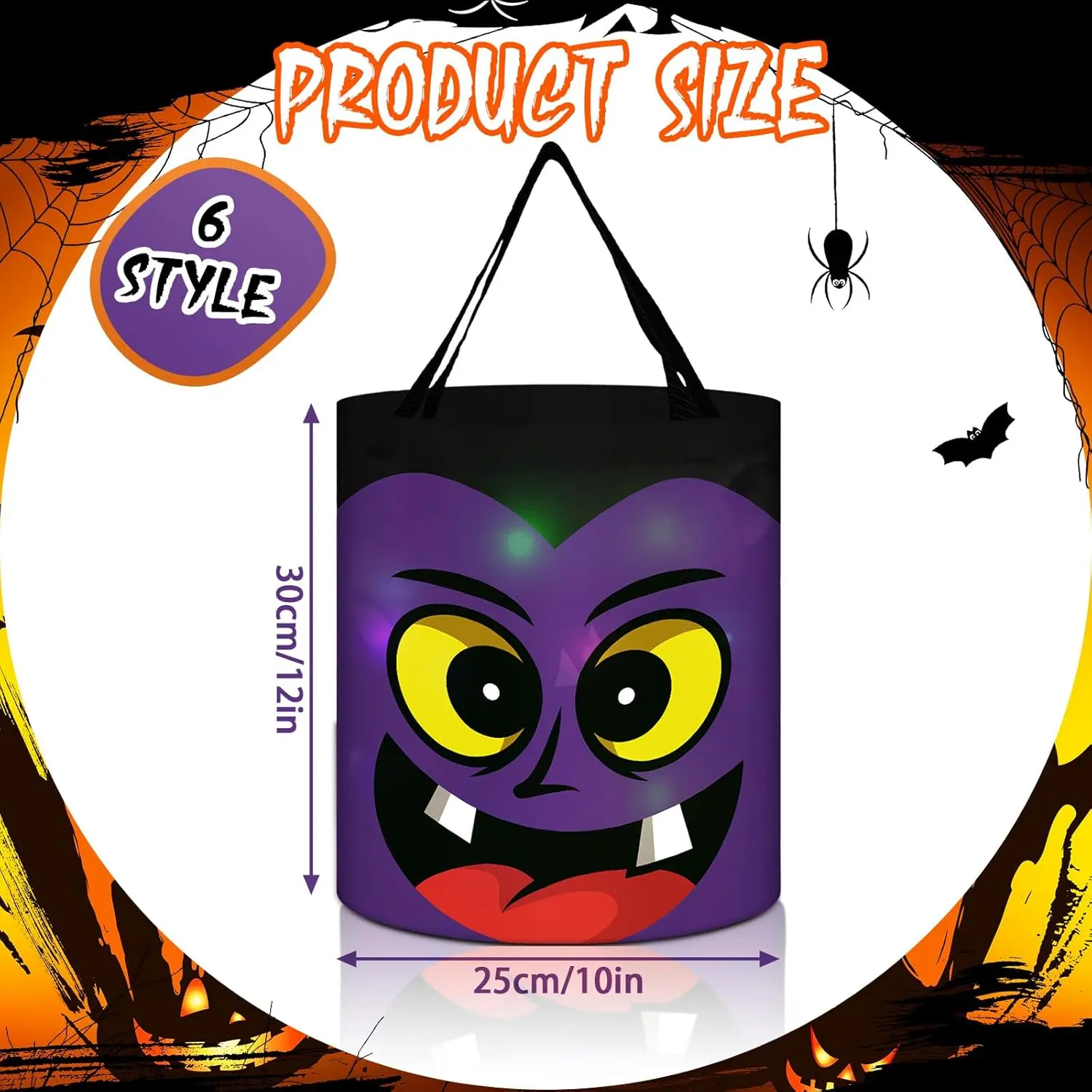Features:You can apply these Halloween party favor bags as gifts for family members, friends, relatives, coworkers, neighbors, and other people you care about, so you can send them to show your love and concern, and to strengthen your relationships.This Halloween storage totes set comes in 6 distinct colors and patterns, giving you plenty of options to suit your particular tastes and moods.You can also use different colors to complement different occasions and have a good time.Specifications:Material: polyester, LED lightsColor: as shown in the picturesSize of the bag body: about 25 x 30 cm/ 10 x 12 inchesPackage includes:6 x LED candy bagsNotes:Manual measurement, please allow slight errors on size.The color may exist a slight difference due to different screen displays.Small items included, adults' supervision is needed when it is played by your little ones.