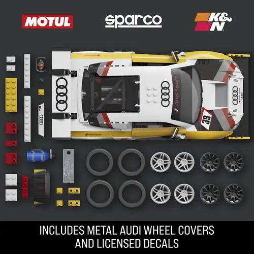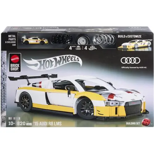 Summary:Buckle up and get ready for high-octane speed with the buildable 1:16 scale '15 Audi R8 LMS by Mattel Brick Shop. This detailed and authentic set includes decals for customization, 2 sets of wheel covers, a metal signature plate, plus an exclusive matching metal car. Collect all the cars in the Elite Series™ and build your collection.Features:Build the Iconic Racecar: Fully buildable 1:16 scale ’15 Audi R8 LMS loaded with realistic details.Customize Your Ride: Includes a custom decal sheet and 2 sets of wheel covers to transform your build.Exclusive Metal Car %26 Metal Signature Plate: Features a matching 1:64 scale metal car and signature plate, available first with Mattel Brick Shop sets.Authentic LMS Details: Features drag-race inspired details, authentic steering wheel and opening doors.Compatible With Other Brands: Pieces combine with all building sets by Mattel Brick Shop and other name brands.820 pieces, 1 decal sheet, and 1 metal die-cast carAges 10Y+Colors and decorations may vary