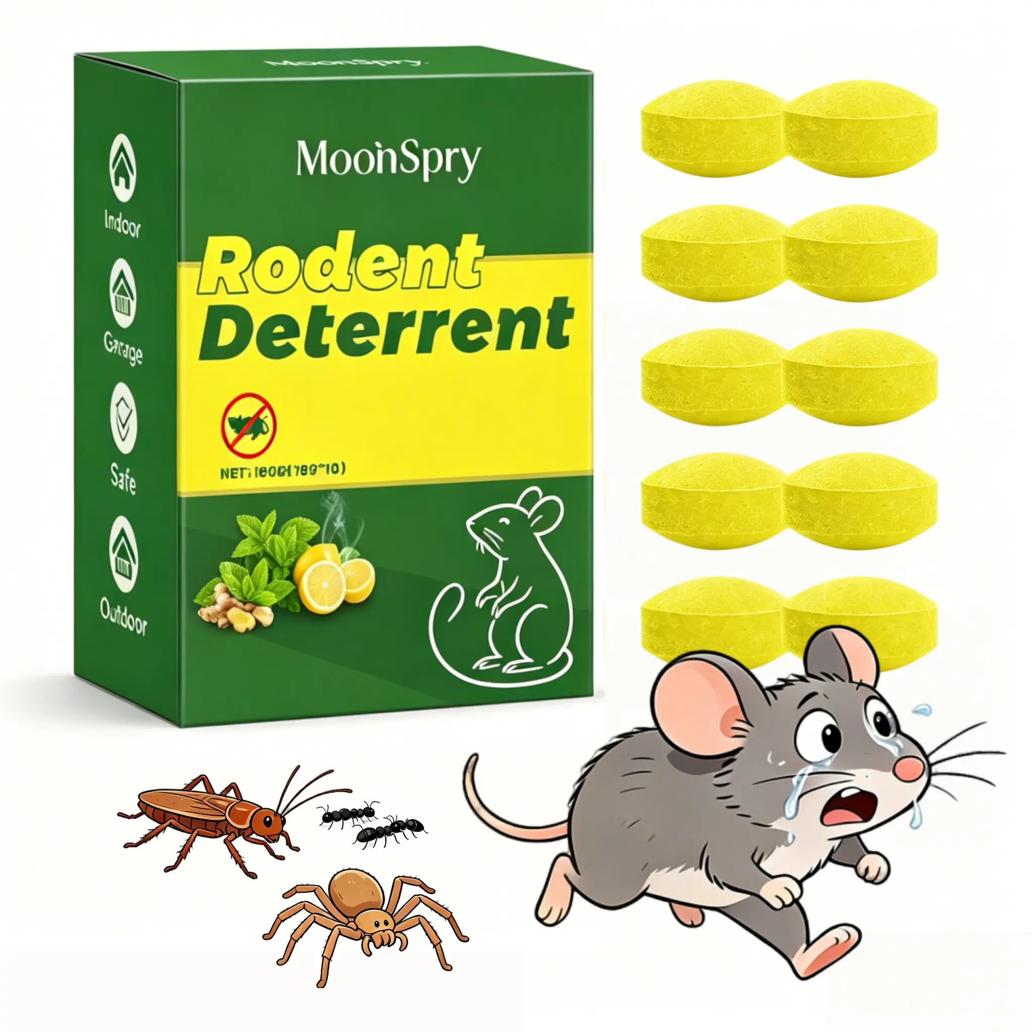 10-Pack Popular Natural Rodent Repellent Balls! RodentRepellent Balls Infused with peppermint and lemon oil, theseballs effectively deter squirrels, rats, spiders, and otherpests. Safe, long-lasting