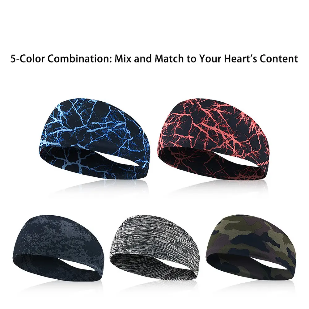 5PC Moisture Wicking Sports Headband for Men Women Non Slip Sweat Headband for Running Workout Basketball Gym Yoga Fitness Breathable Lightweight Hair Band for Athletic Activities Outdoor Sports Daily Wear