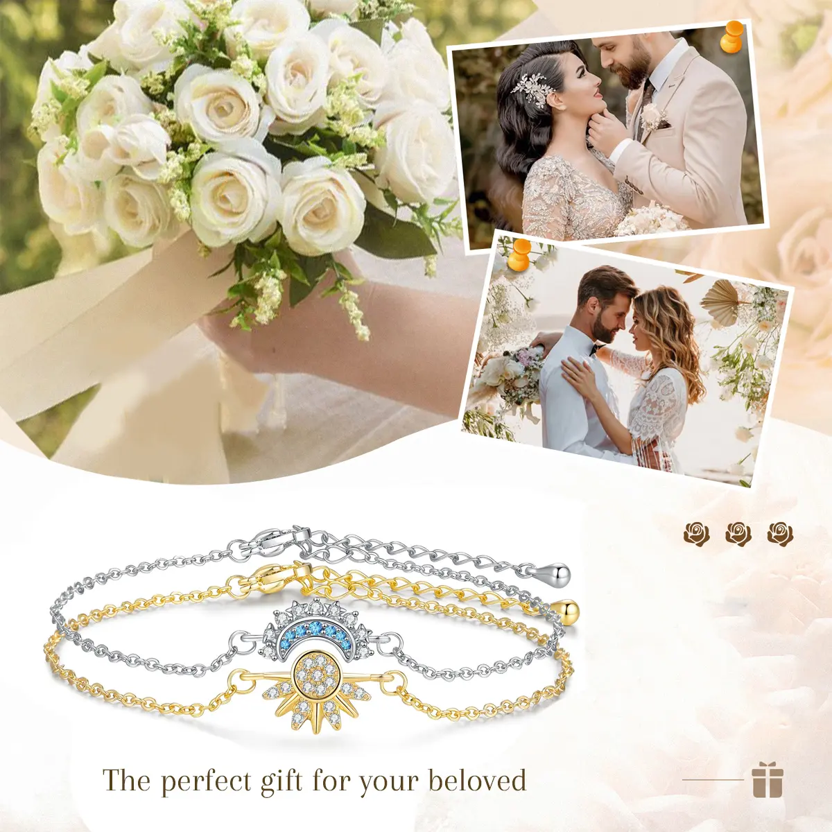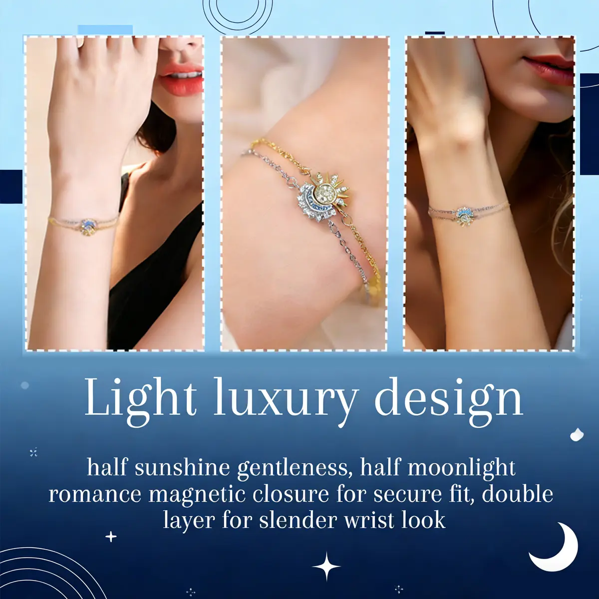 Sun & Moon Couple Bracelet Set – Zircon Inlaid Matching Bracelets for Men and Women, Celestial Sun Moon Jewelry, Friendship Bracelet Gift for Couples, Best Friends, Sisters, Valentine Anniversary Gift