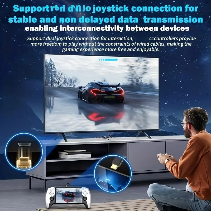 ·【All-Scenario Control System】: Utilizing a 360° non-slip joystick and textured crystal buttons, this electronic game player provides precise feedback and ergonomic design. It's ideal for racing and games, supporting bluetooth-compatible controller expansion for an unrestricted gaming experience.