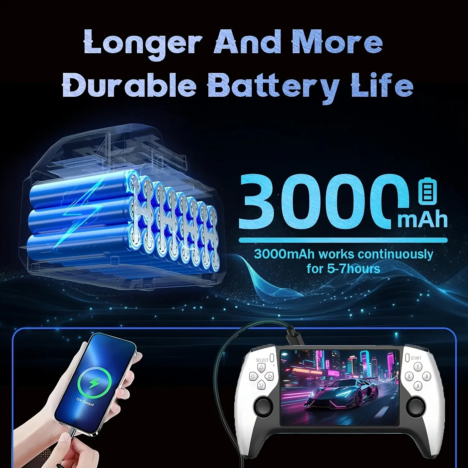 ·【Sustainable Battery Ecosystem】: Equipped with a 3000mAh high-density lithium battery and Type-C fast charge technology, this portable game player offers 4-6 hours of intensive gaming endurance. Charging efficiency is increased by 30%, compatible with mainstream charging devices.