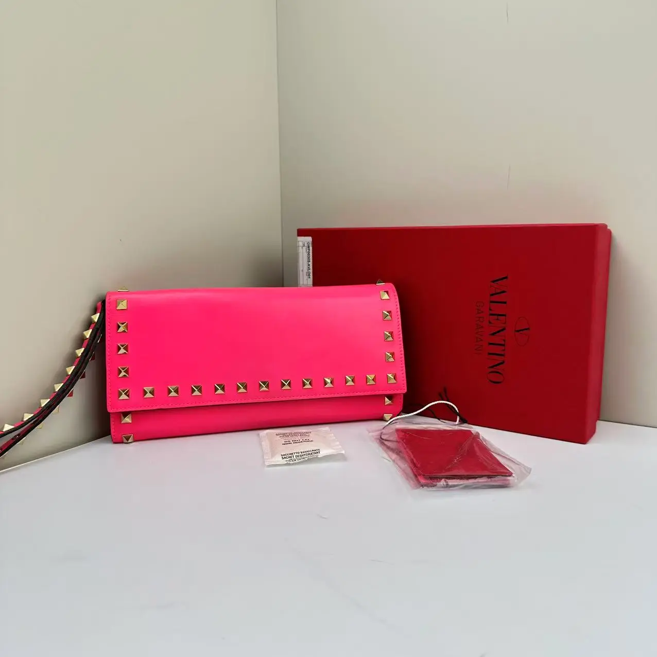 ✨ Elevate your style with the Rockstud Wristlet Flap Clutch Pink. Its design and functionality make it a must-have for any fashion-forward individual. Stay stylish and organized with this clutch.