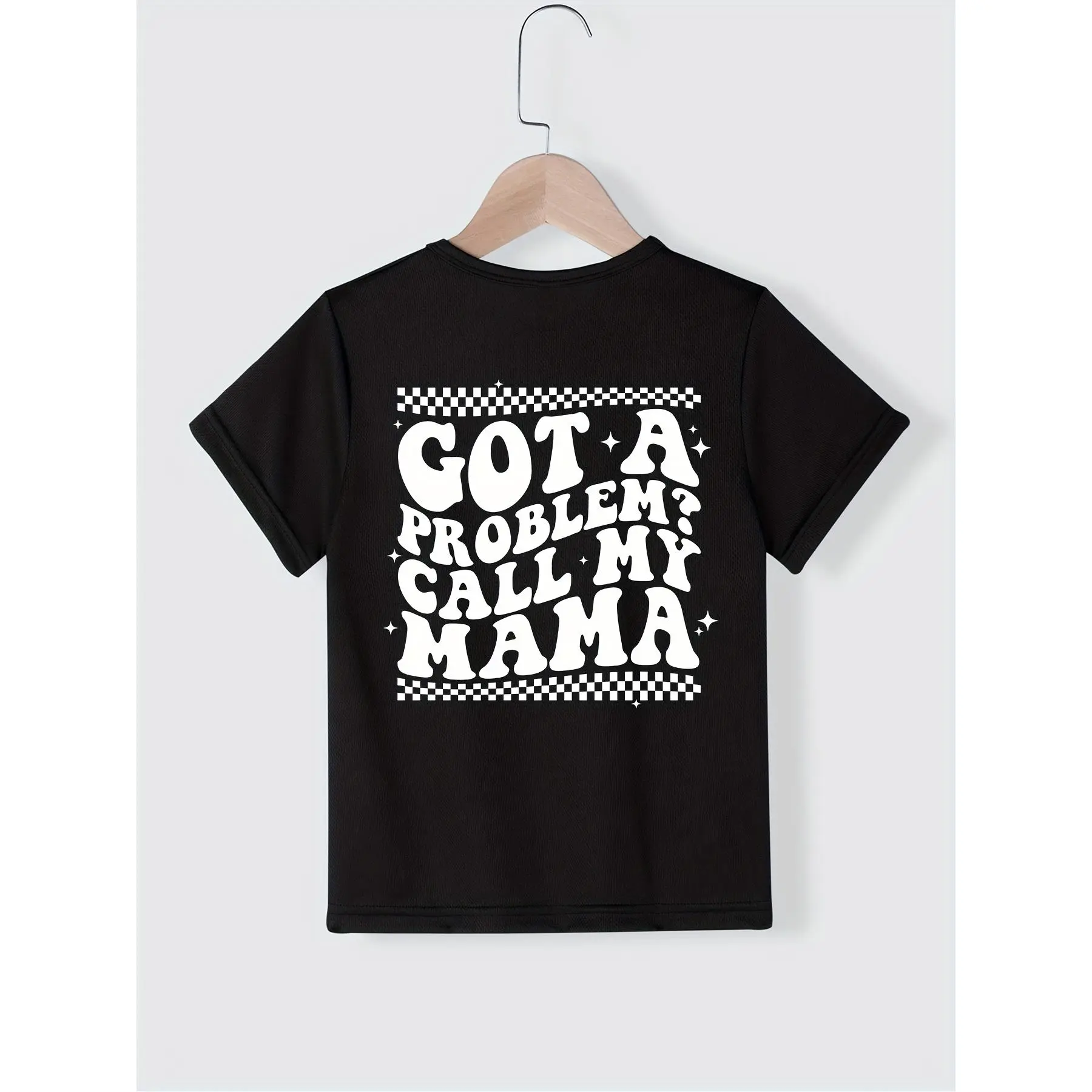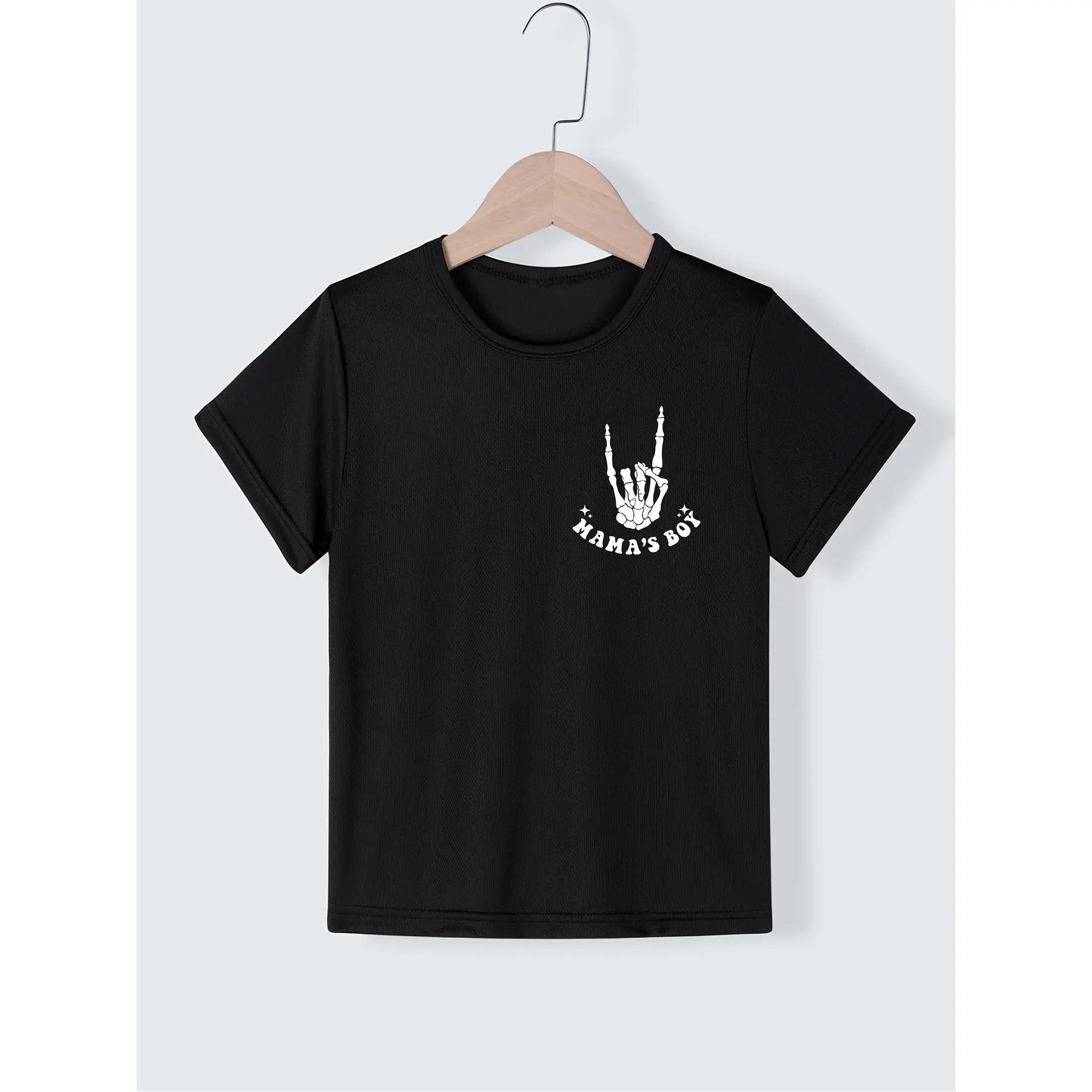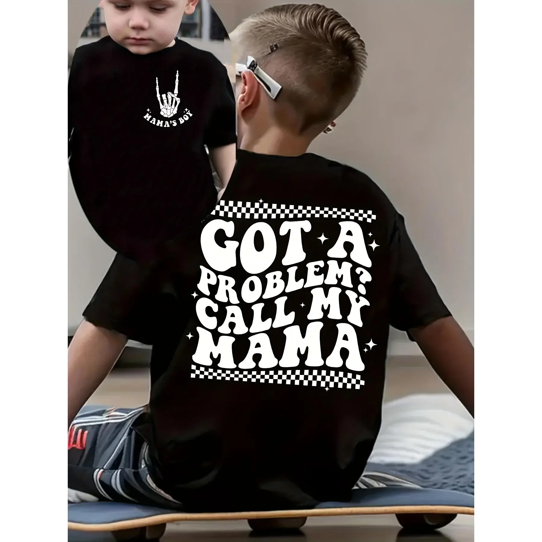 Summer Fashion Boys' Short-Sleeve T-Shirt with Skull Element "GOT A PROBLEM? CALL MY MAMA" Letter Print Double-Sided Casual Top NYDX4412