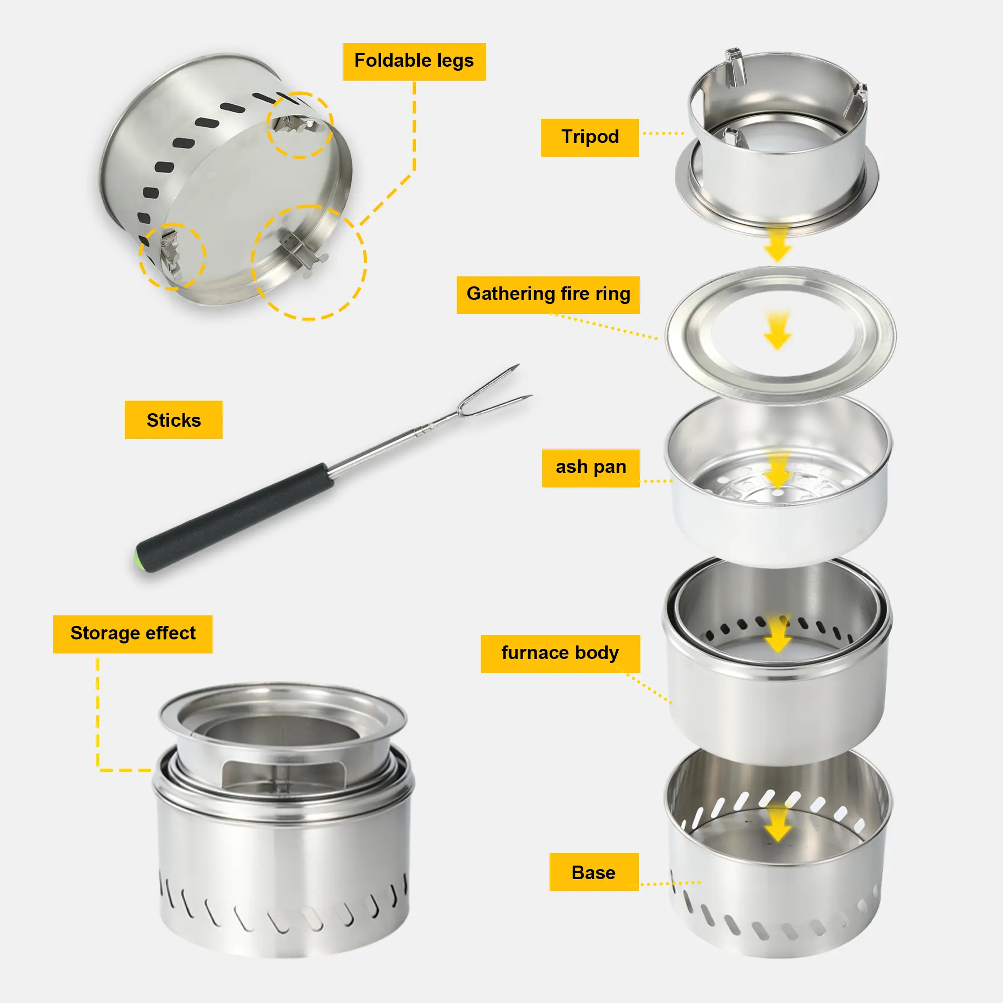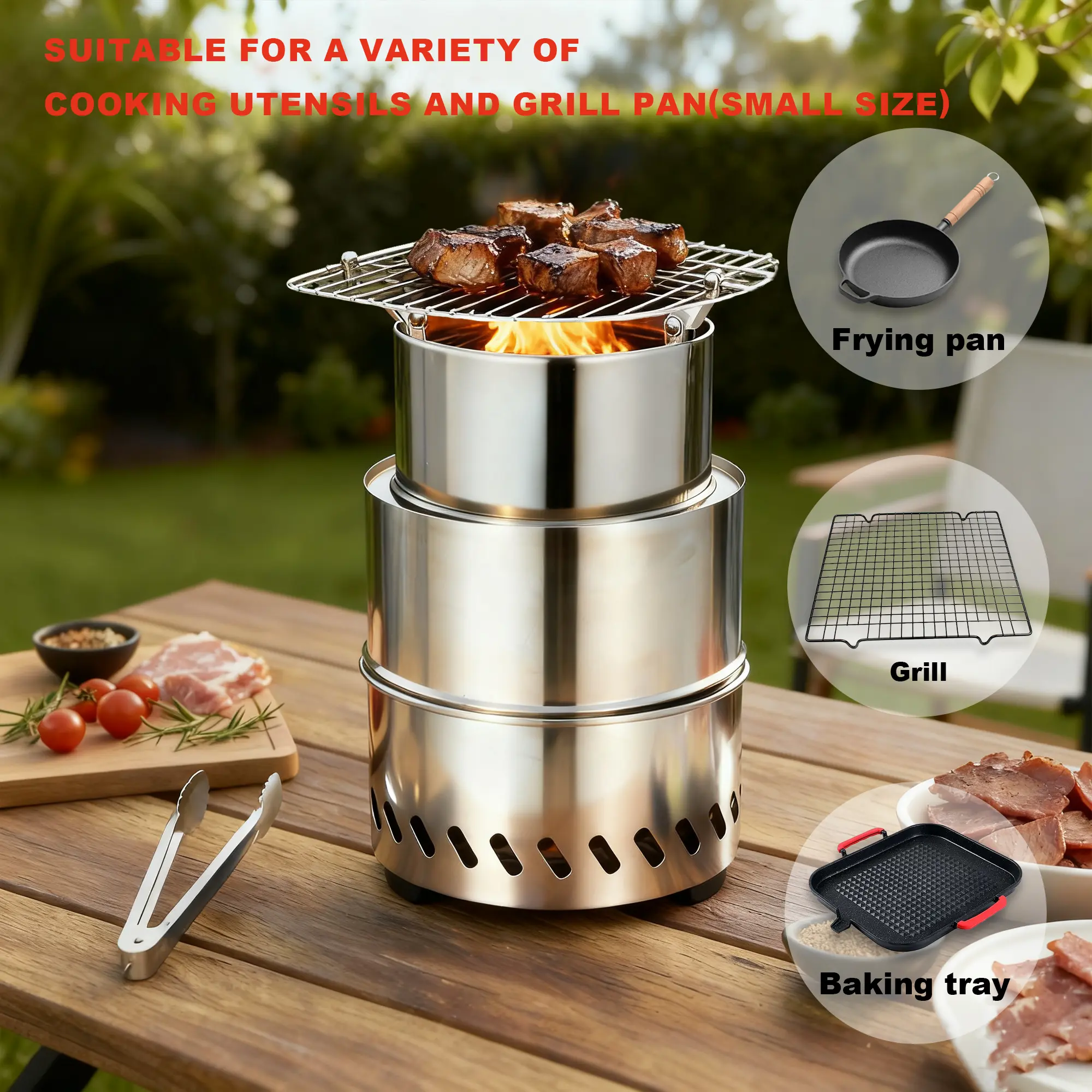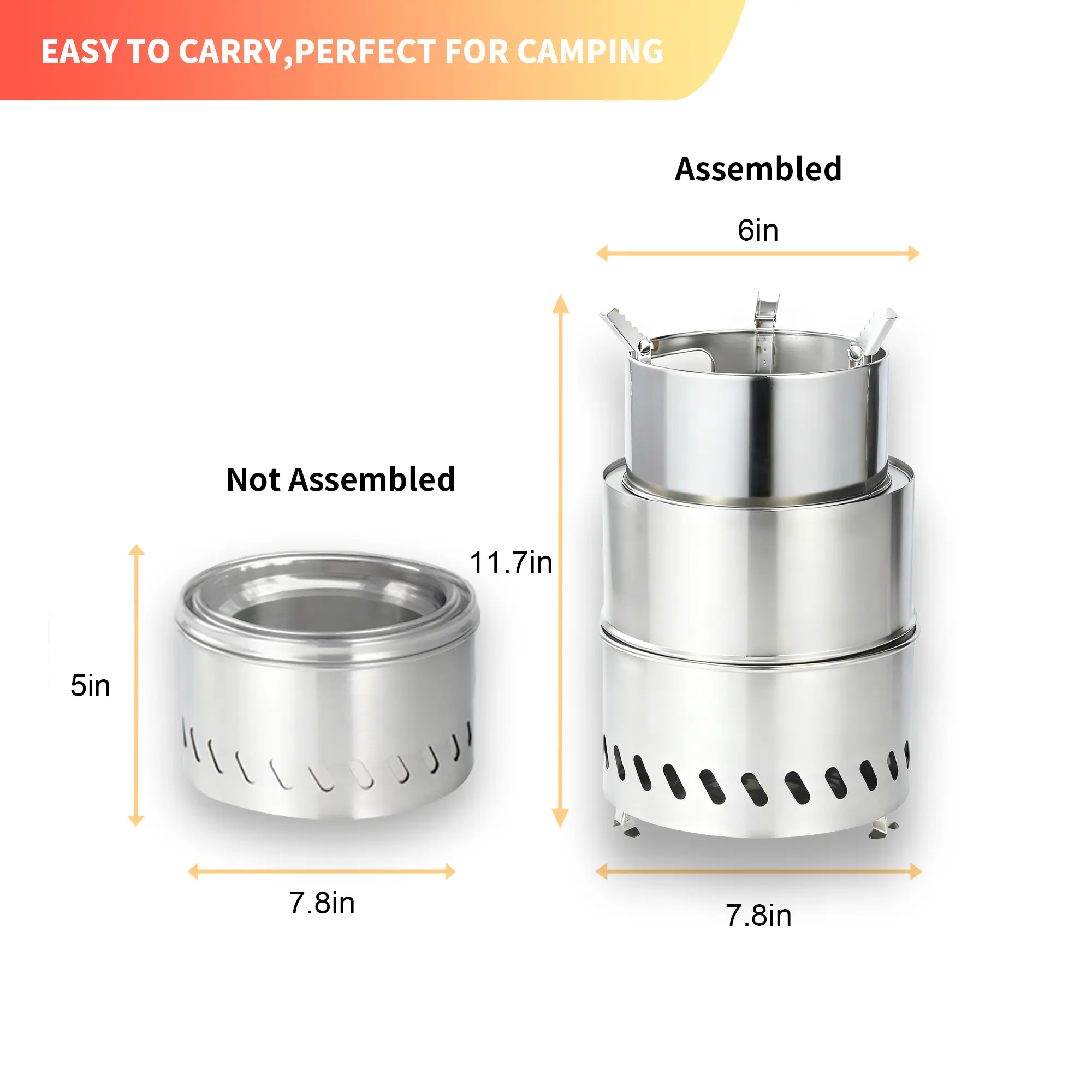This portable camping stove is perfect for hiking, picnics, and BBQs. Made from stainless steel, it ensures durability and efficiency. The secondary combustion feature maximizes heat output. Compatible with firewood and wood pellets, it offers versatile fuel options. Easy to assemble and carry, it's a must-have for your outdoor gear.