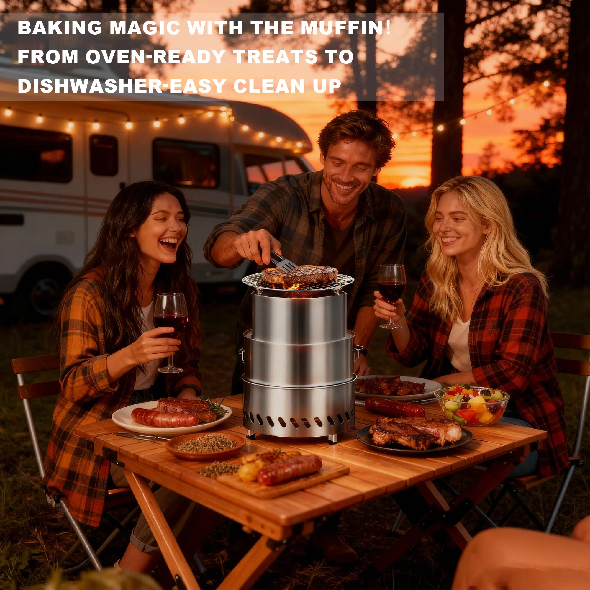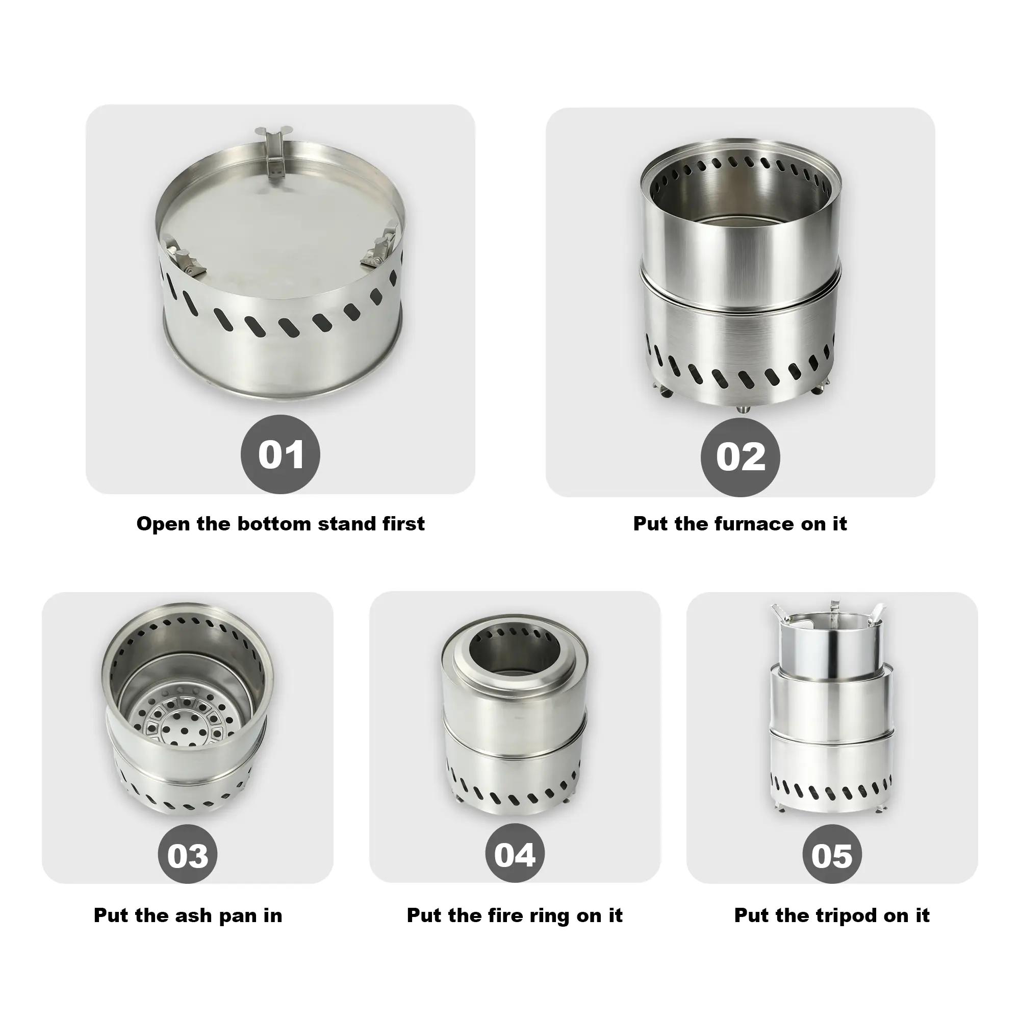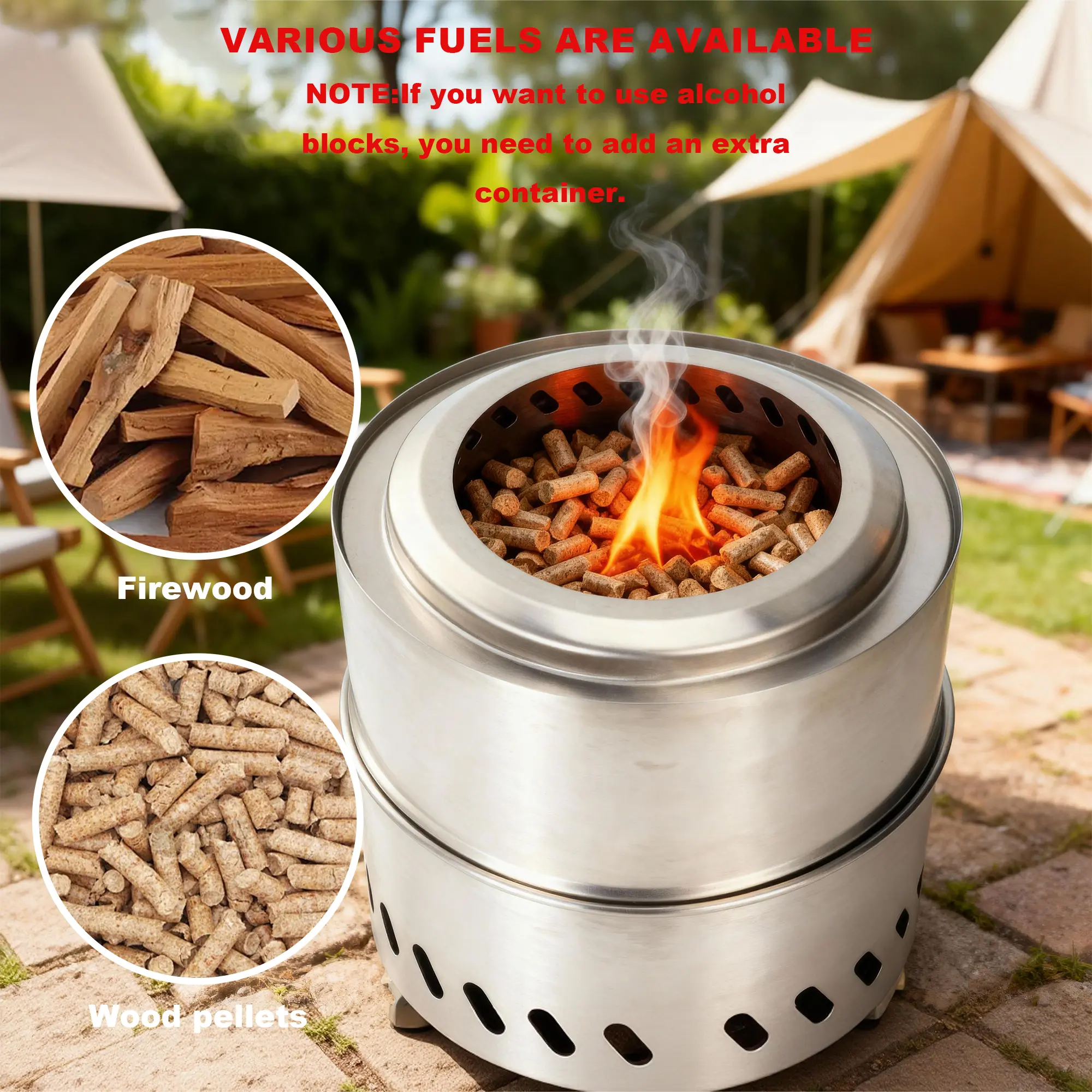This portable camping stove is perfect for hiking, picnics, and BBQs. Made from stainless steel, it ensures durability and efficiency. The secondary combustion feature maximizes heat output. Compatible with firewood and wood pellets, it offers versatile fuel options. Easy to assemble and carry, it's a must-have for your outdoor gear.