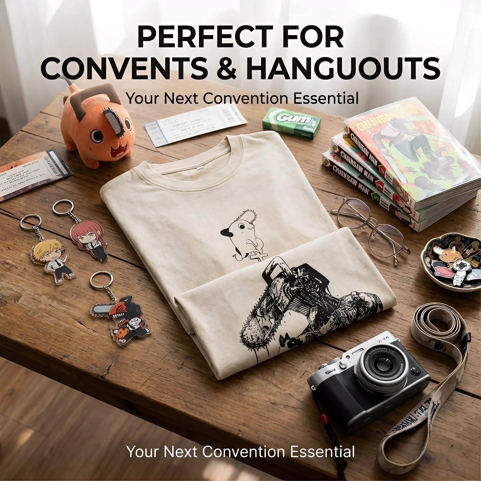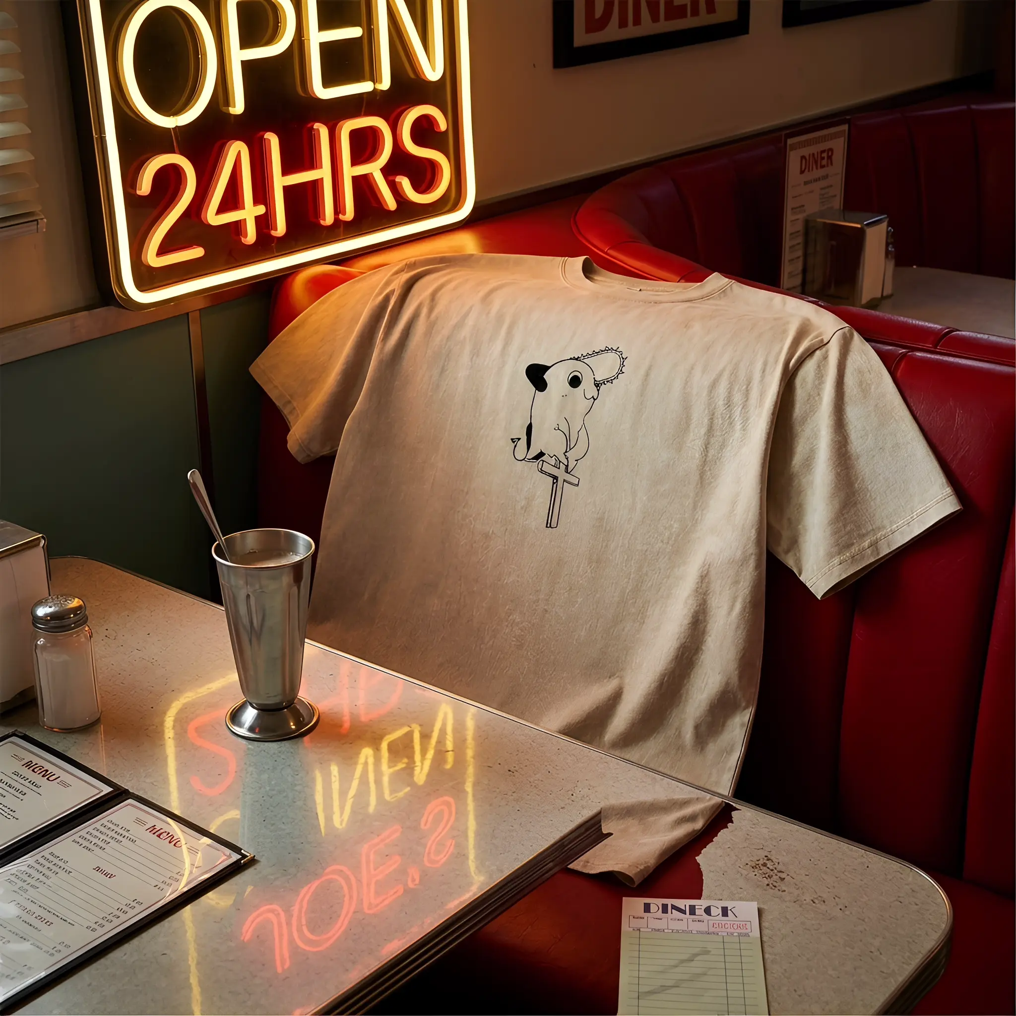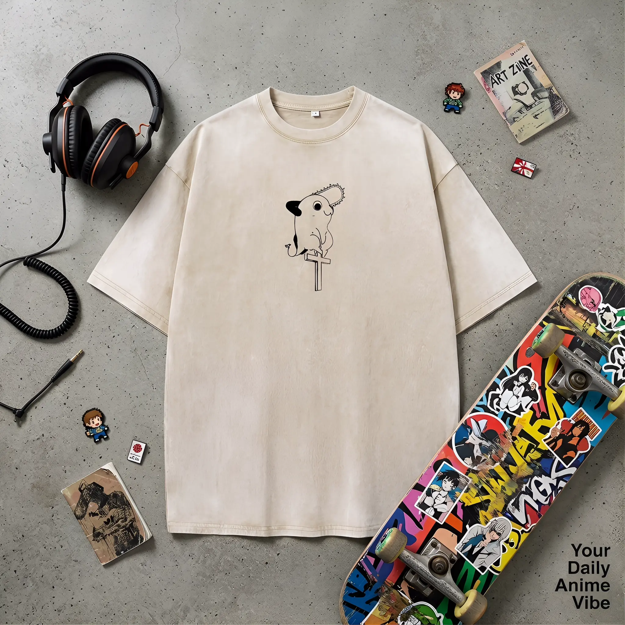 Trendy anime Chainsaw Man Pochita vintage washed T-shirt, retro distressed short-sleeve shirt, official anime print, soft 100% cotton, breathable and durable, perfect for streetwear, casual outings, cosplay, and anime fans, limited edition collectible
