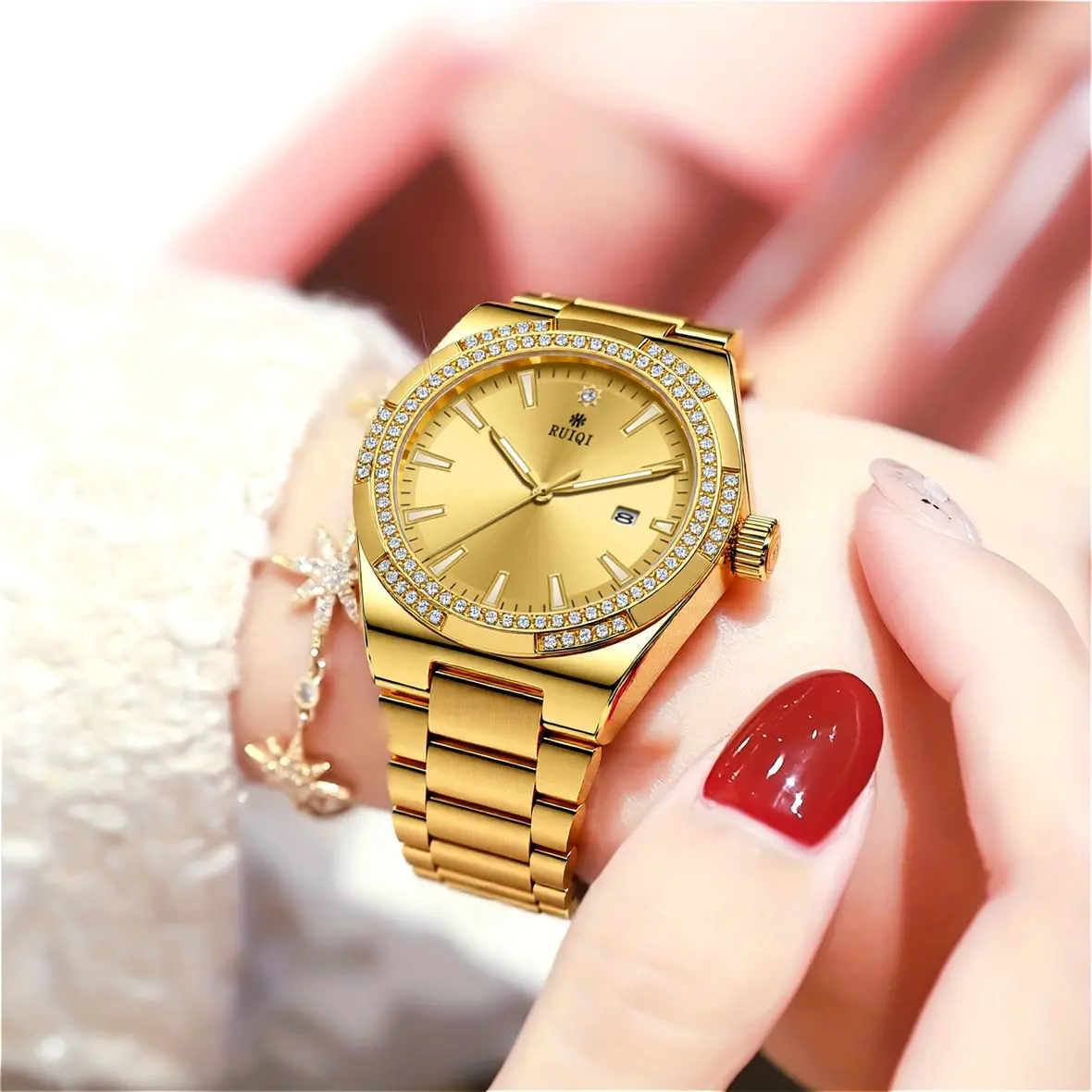 Women's Gold Watch Women Casual Business Quartz Stainless Steel Strap with Rhinestones Women's Watches fashion wrist watch Jewelry Beads watches for women