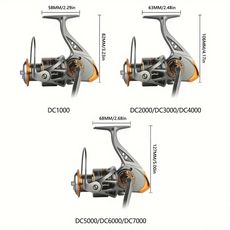 Spinning Fishing Reel Made of Aluminum Alloy with a Gear Ratio of 5.2:1, Suitable for DC 1000-7000 Series, Featuring a Maximum Drag of 26LB, Designed for Both Freshwater And Saltwater Use