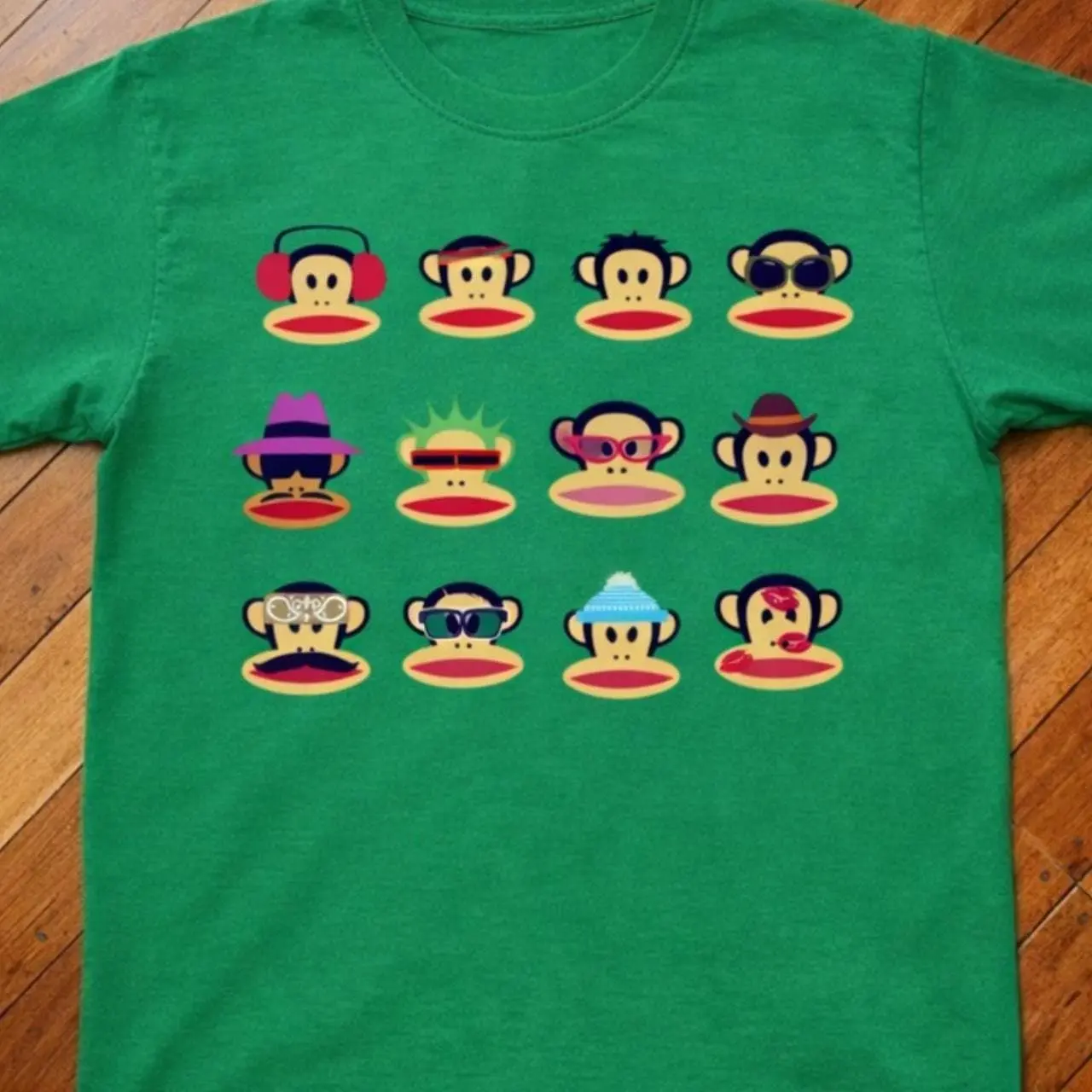 Funny Monkey Green Multi Coloured Graphic Baby Tee – Y2K Vintage Cartoon Aesthetic Top
