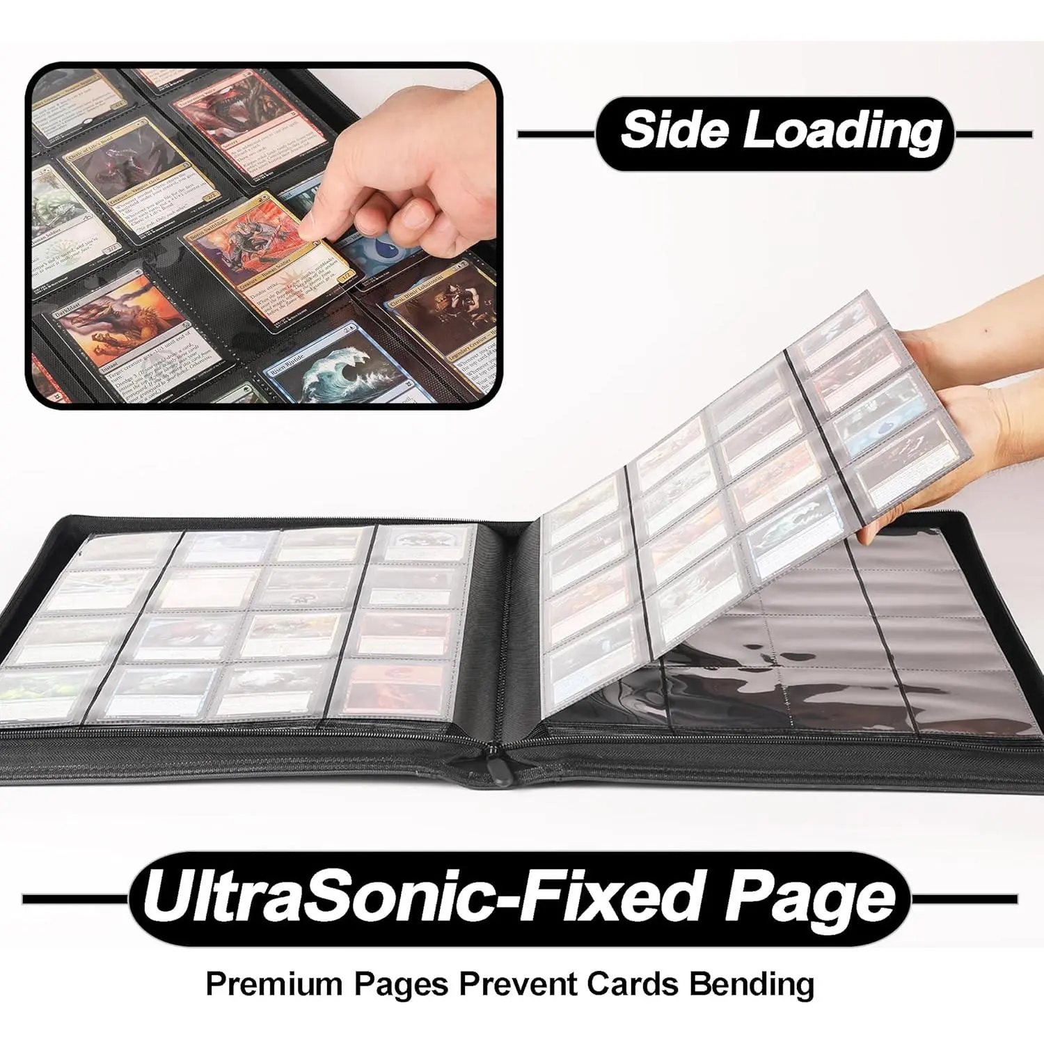 SUNDAY MIRTH Card Binder 16 Pocket - Fits 1024 Cards,4X4 Ringless Card Album with Sleeves for Trading Cards & Sports Cards(Model A,Classic Black)