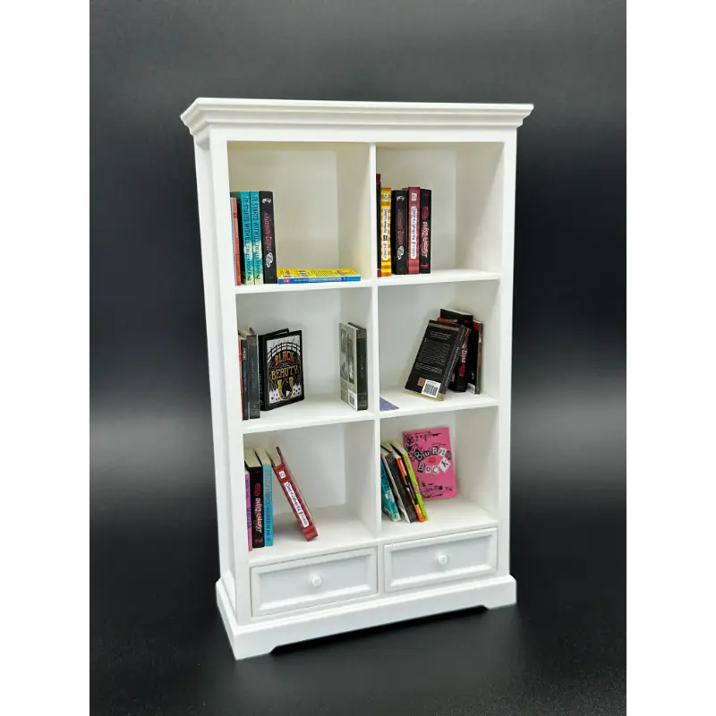 Introducing our delightful 2 Drawer 3 Shelf Miniature Bookcase crafted especially for your Mini Brands Books! Elevate your miniature book collection with this charming and customizable display piece. This model features 2 drawers that are functional for all of your mini items! This item is 3D printed out of a durable PLA plastic material.