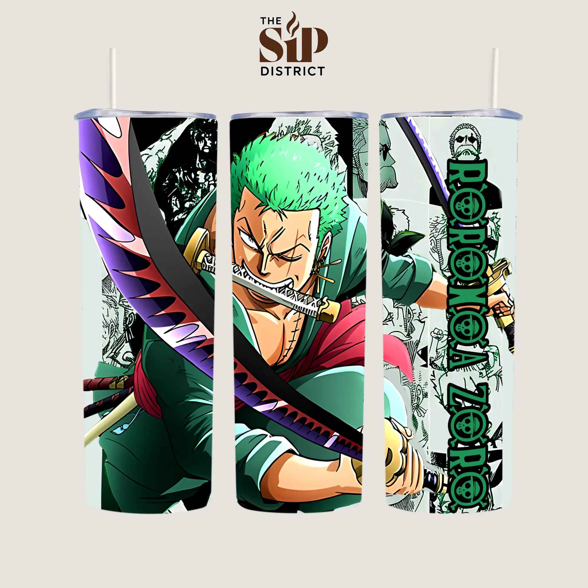 The Sip District. Roronoa Zoro 20oz 40oz Handle Tumbler  OP – Pirate Hunter Anime Stainless Steel Travel Mug, Santoryu Sword Style Cup, Double Wall Thermal Drinkware, Large Iced Coffee Tumbler, Otaku Gift for Anime Fans