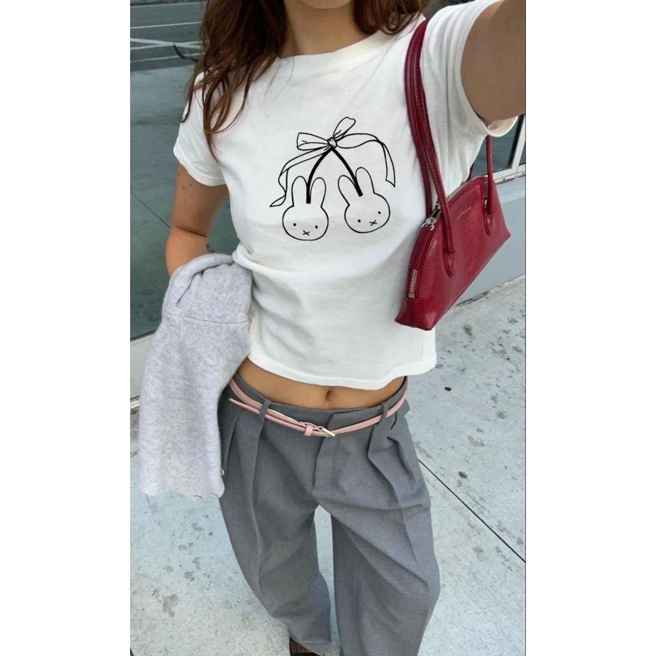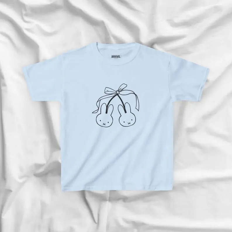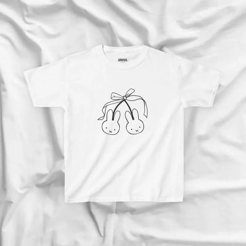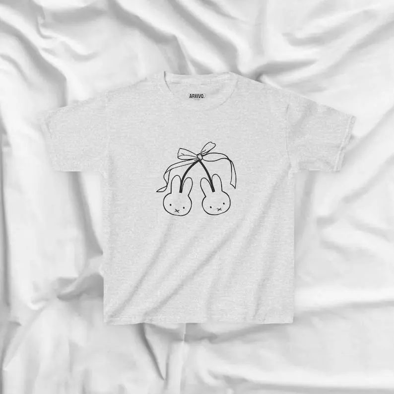 Miffy Cherry Twins Baby Tee – Cute Y2K Graphic Tee, Coquette Aesthetic Kawaii Bunny Shirt, Vintage Crop for Women