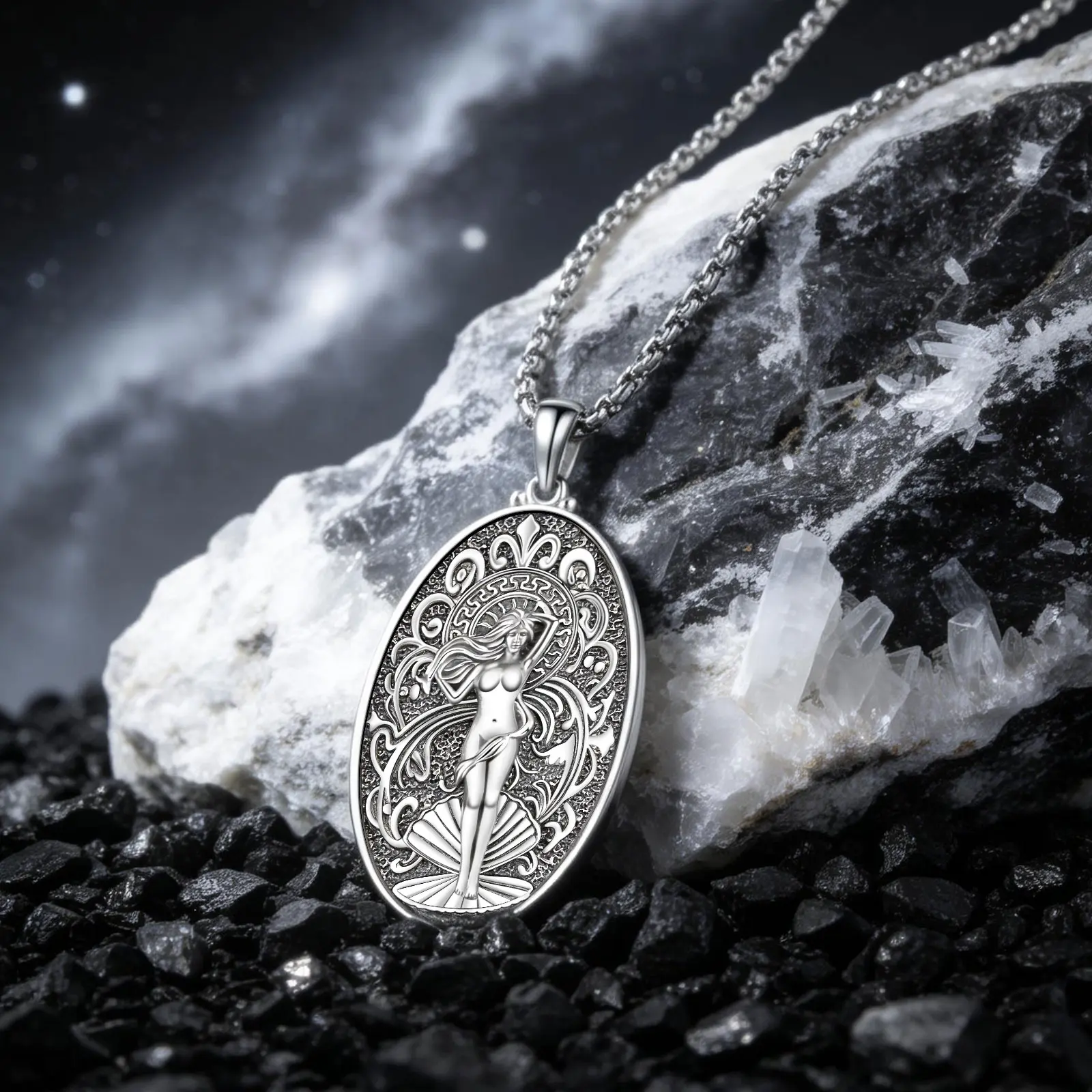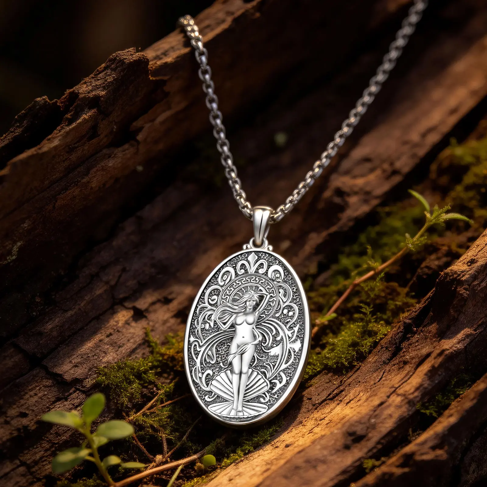 Symbolic Aphrodite Goddess Amulet Design. This necklace is designed with the image of Aphrodite, the Greek goddess of love and beauty, symbolizing romance, grace, confidence and divine blessing. As a meaningful faith amulet, it is perfect for those who love mythology and elegant symbolic jewelry, suitable for both women and men.