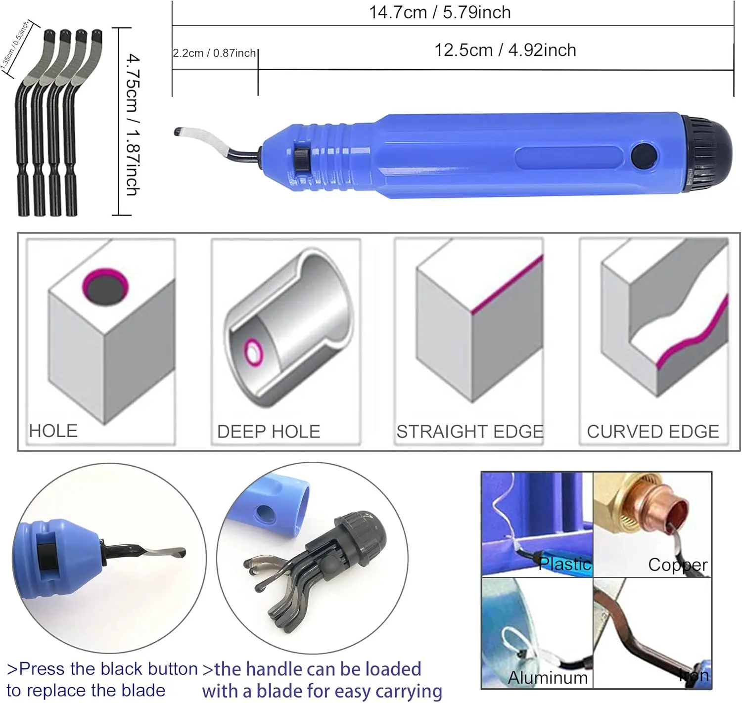Package includes: 1pcs-Knife Clean Up Kit (10 blades with 3 handle), 1pcs-NB1100 Deburring Tool Handle, 5pcs-BS1010 Deburring Blades, 1pcs-double-sided polished bar,1pcs-Pliers,1pcs-Tweezers,1pcs-Needle File Set(different 10pcs) in total 32 piece. Great tool contains everything you need.