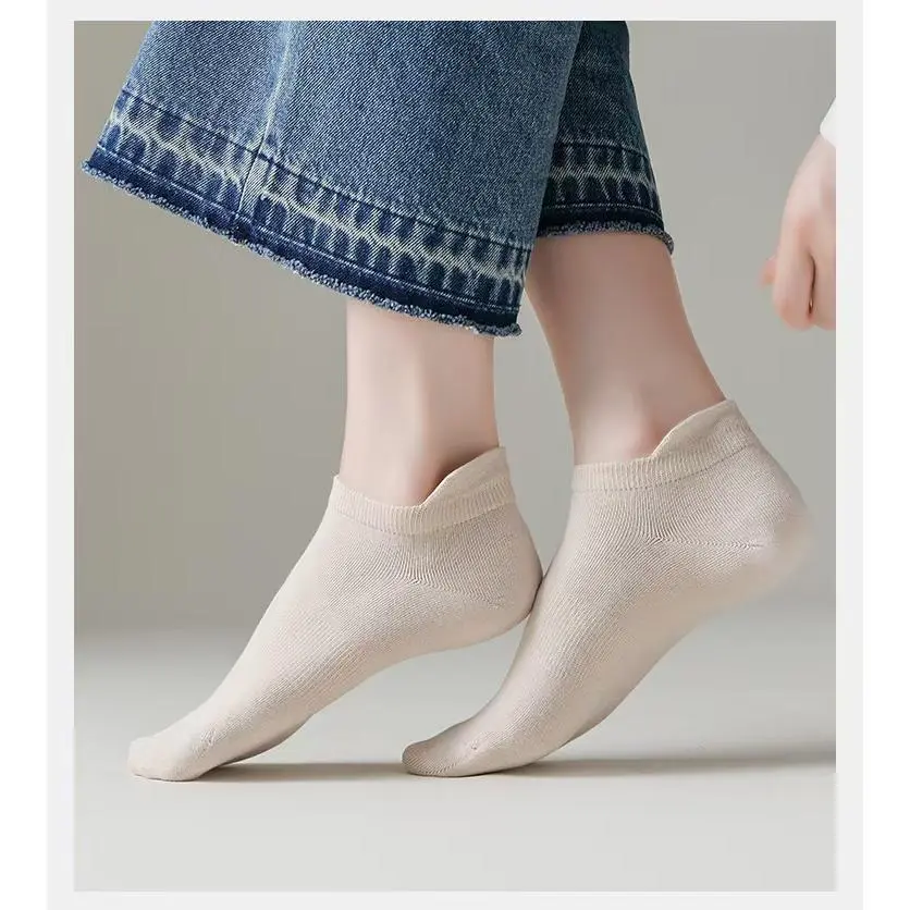 Socks for women in spring and summer, antibacterial, breathable, anti pilling, small ear cotton, women's boat socks, casual, tight spun, boneless women's socks