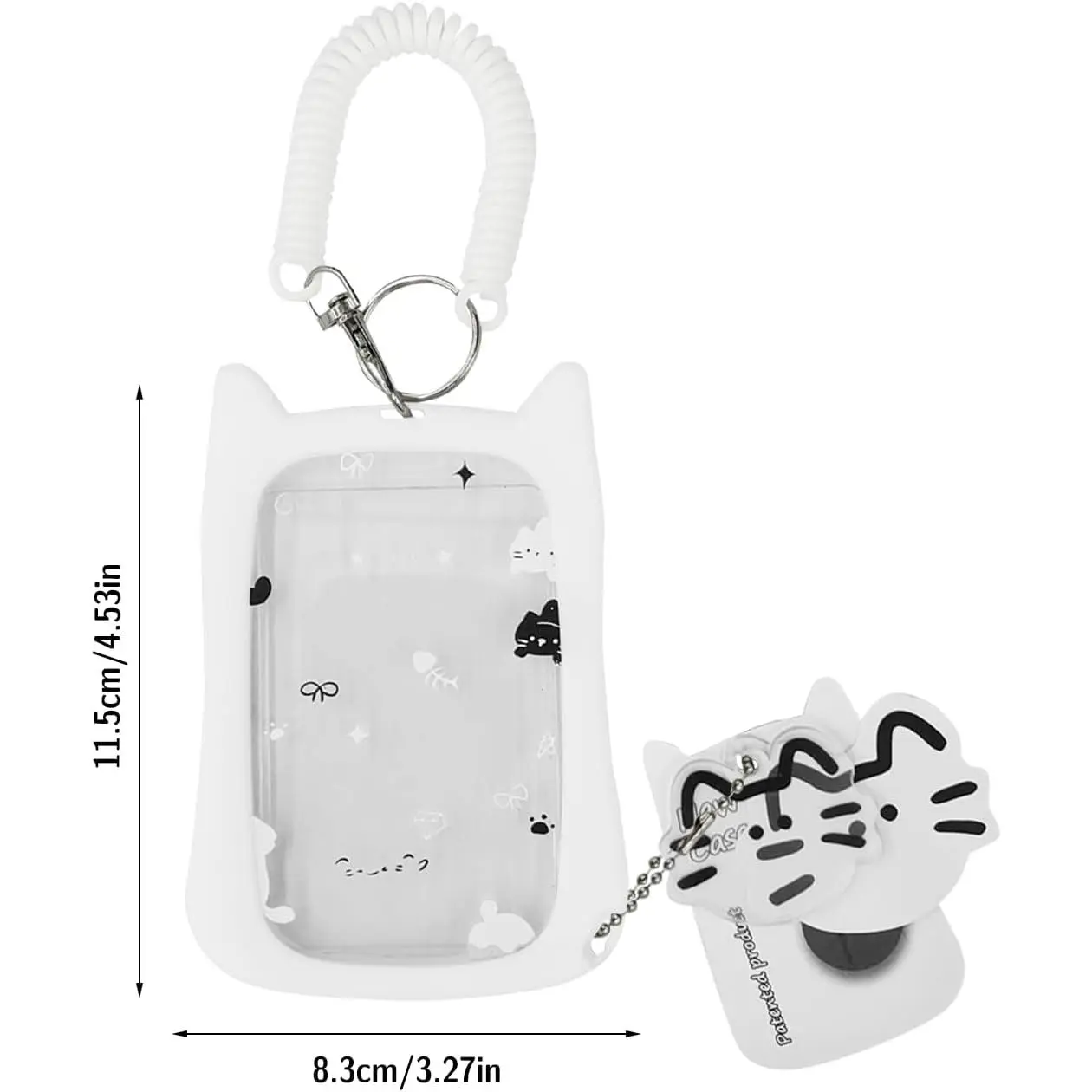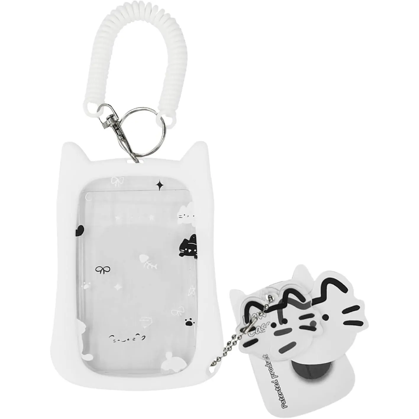 Cat-shaped photo card holder and keychain—Adorable transparent photo card holder and keychain with a pendant, suitable for protecting public transport cards, student cards, and photos.