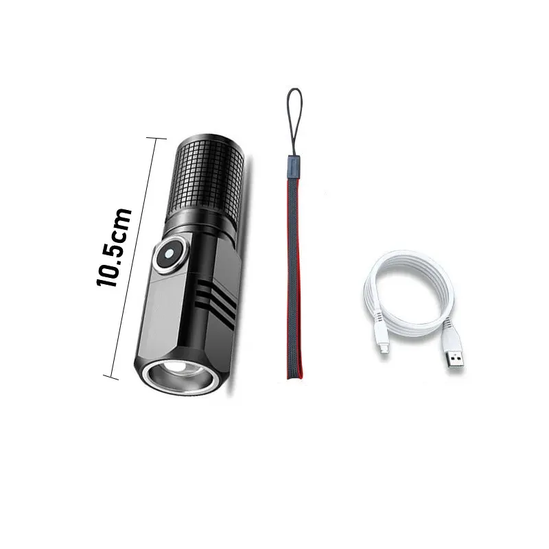 Product Parameter Lamp: xhp50 Size: 13. 5*3*2. 5cm (long)/10. 5*3*2. 5cm (short) Net Weight: 95g (long)/80g (short) Battery: 1*18650/1*16340 Zoom Method: Telescopic Zoom Charging Method: Type-C USB Charging Material: Aluminum Alloy Switch: Push Switch Gear Position: 3 Gears: High-Low-Flash Waterproof Category: ipx8 Life Waterproof Features: 1. super bright xhp50 led lamp is responsible for lighting distant objects with bright light, and the lighting distance can reach 200 meters 2. mini size, light weight, can be operated with one hand, very portable. ideal for hunting, adventure and other outdoor adventure activities. 3. this product has a power reminder function, you can know the power status of flashlight anytime, anywhere 4. waterproof according to ip64, waterproof, can be used in rainy weather, but can not be put into water 5. usb charging method, type-c usb for computer usb, car usb, usb charging plug, charging flashlight. 6. zoom function. spotlight for long distance observation and projector for great area lighting! Easily light up an entire room or focus on objects up to 1000 meters away!