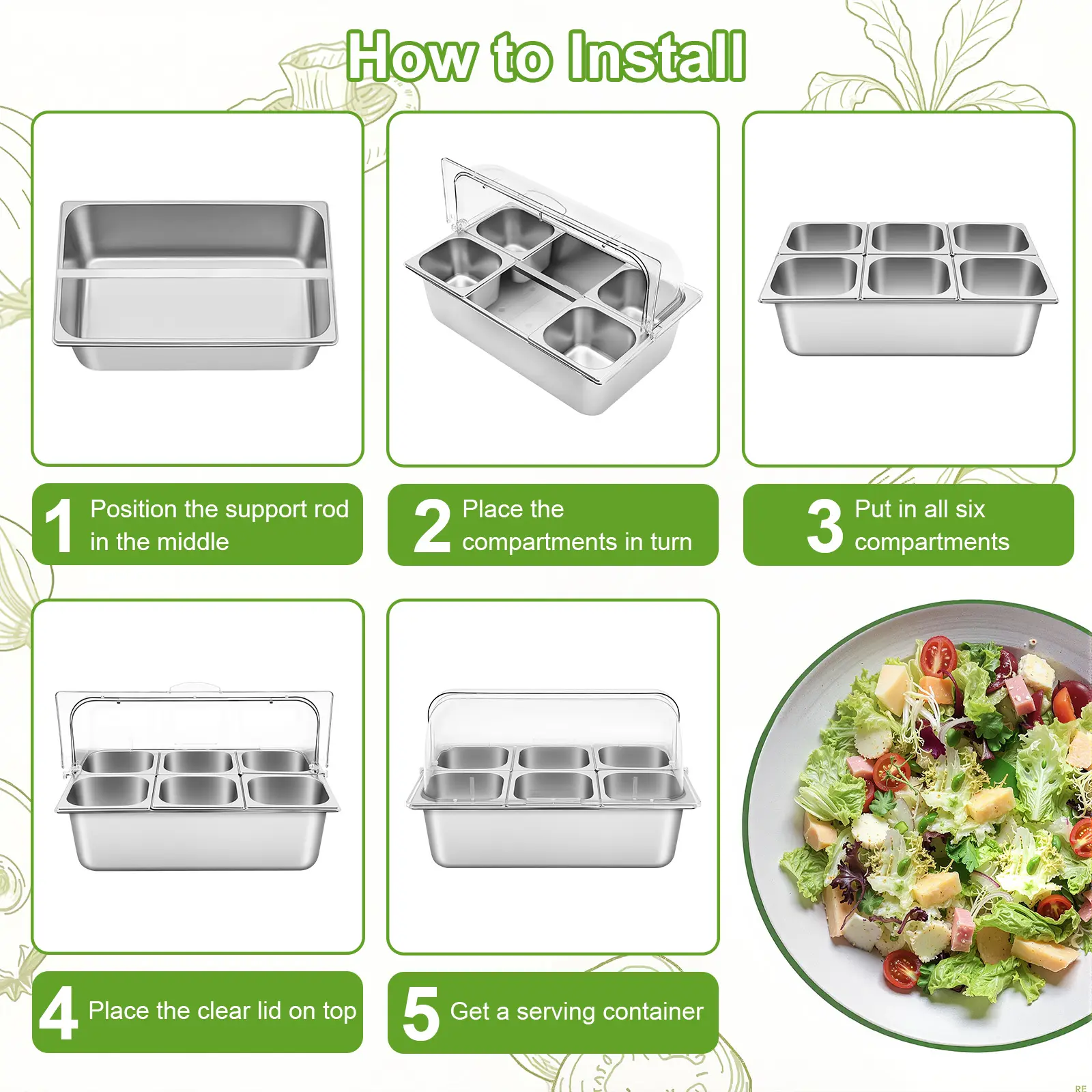 Use the included spoons and tongs for hygienic self‑service.