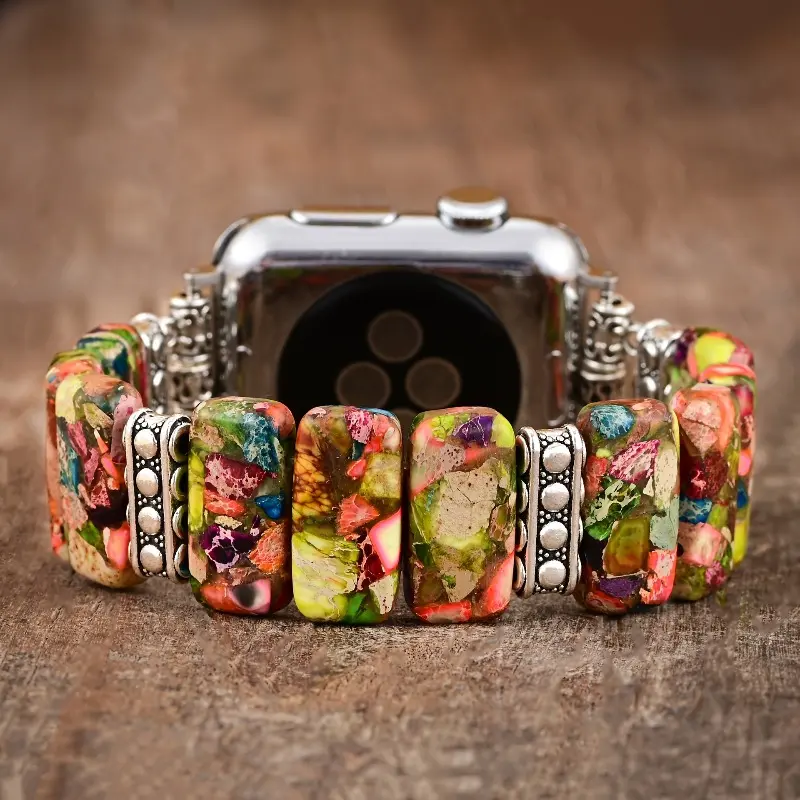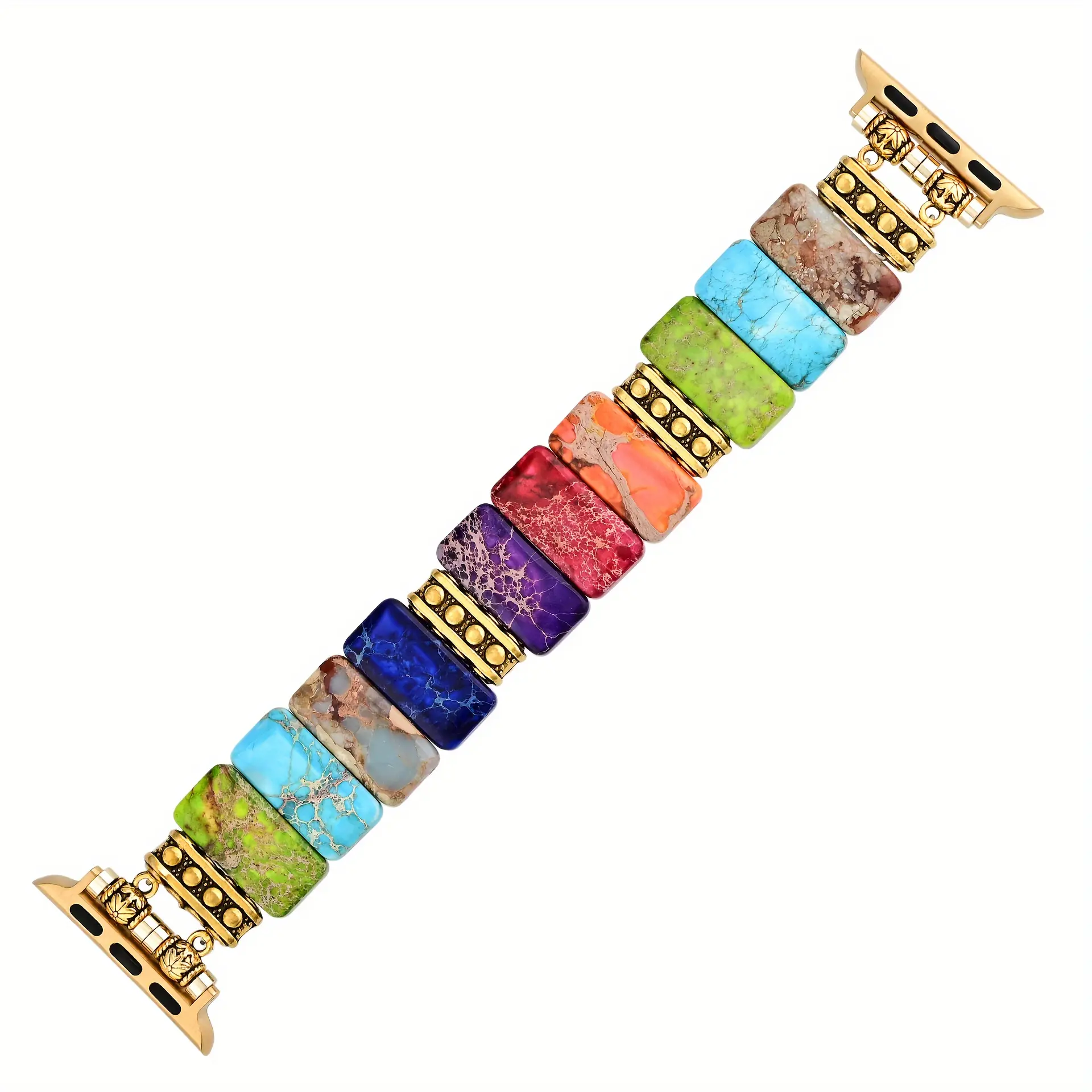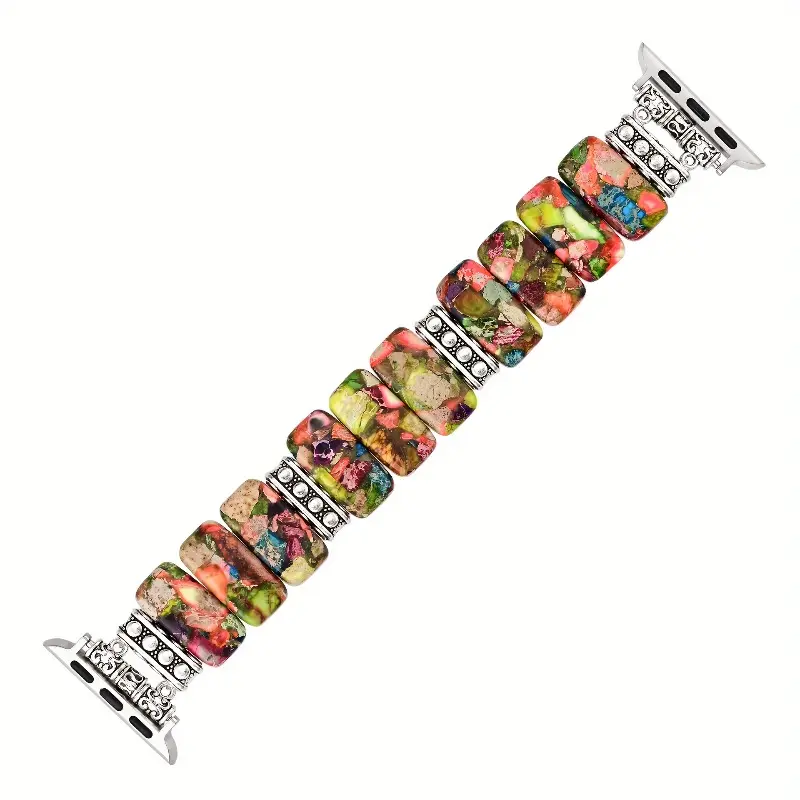 Colorful Natural Stone Beaded Apple Watch Band, Handmade Elastic Stretch Strap Compatible with iWatch Series 9/8/7/6/5/4/3/2/1 38mm-49mm, Cute Feminine Watch Band for Women