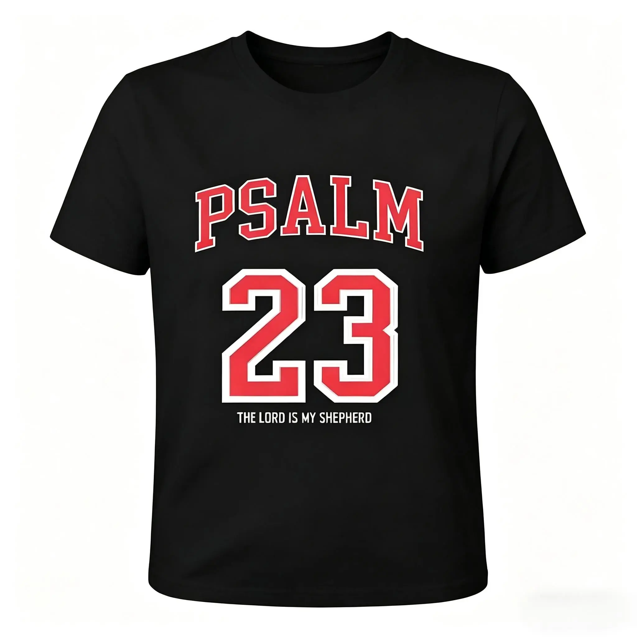 [100% cotton] printed with Psalm 23 personalized graphic casual black T-shirt comfortable fabric top