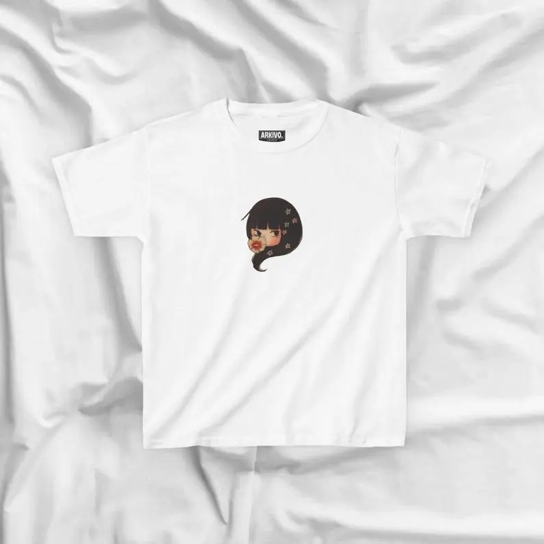 Sawako Kuronuma Baby Tee – Y2K Baby Tee, 90s Graphic Crop Top, Coquette Vintage Design, Perfect for Anime Lovers